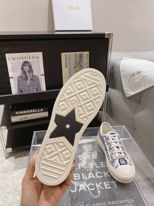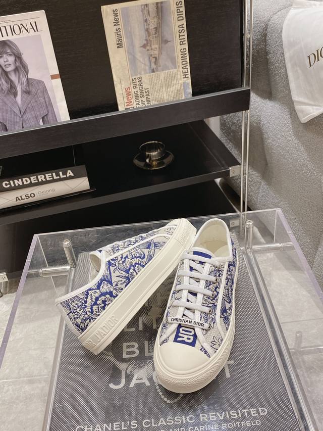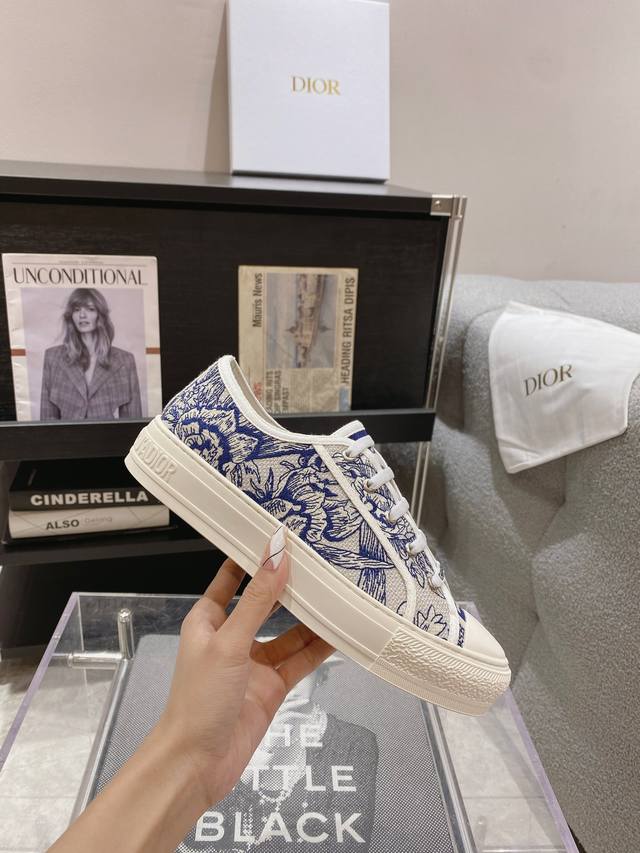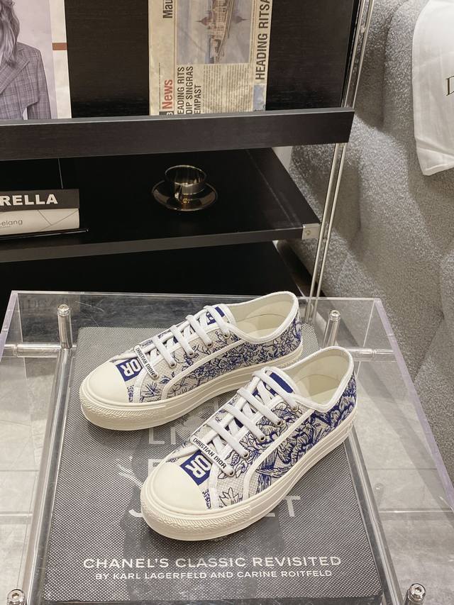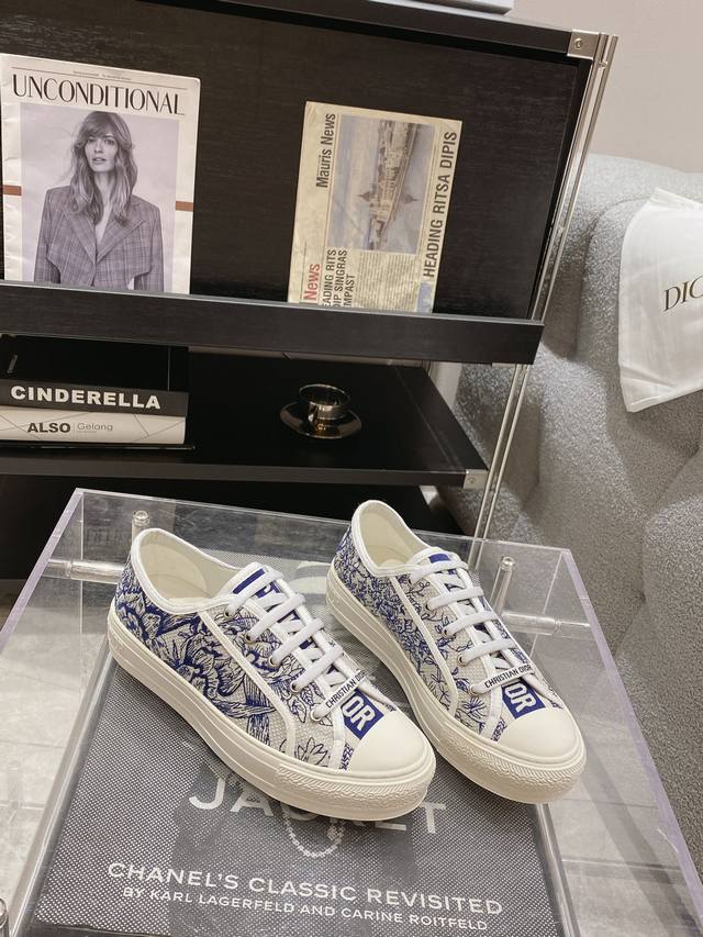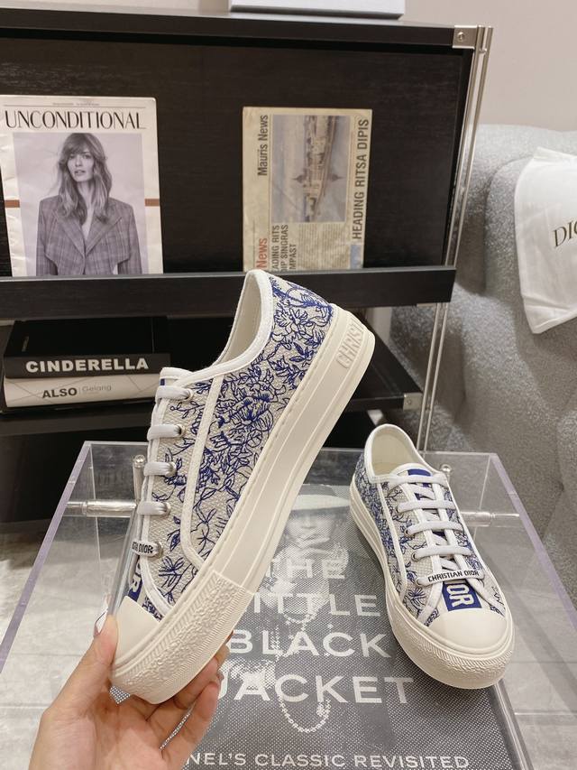 出厂: 新色上线size:35-41 41码订做不退换 Dio*迪奥 刺绣 系列. 图案系带平底休闲鞋