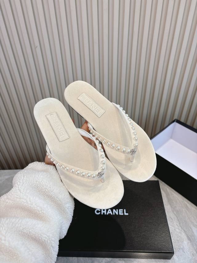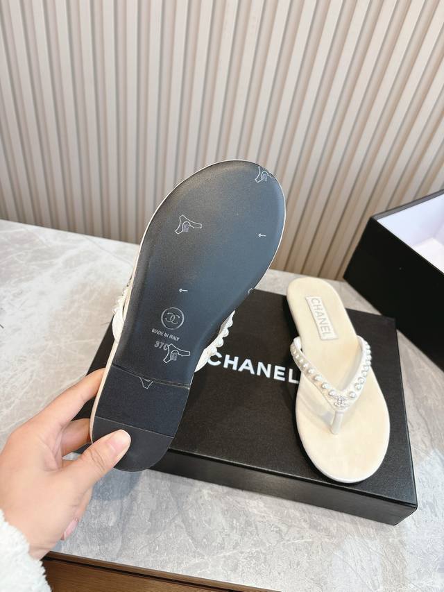 / 出厂 顶级版本 25ss新款CHANEL夹拖人字拖鞋!这一系列这真的是绝了 怎么会这么美!夏天真的是无敌搭配可盐可甜~ 鞋面采用原版丝绒内里是小羊皮真皮大底码数