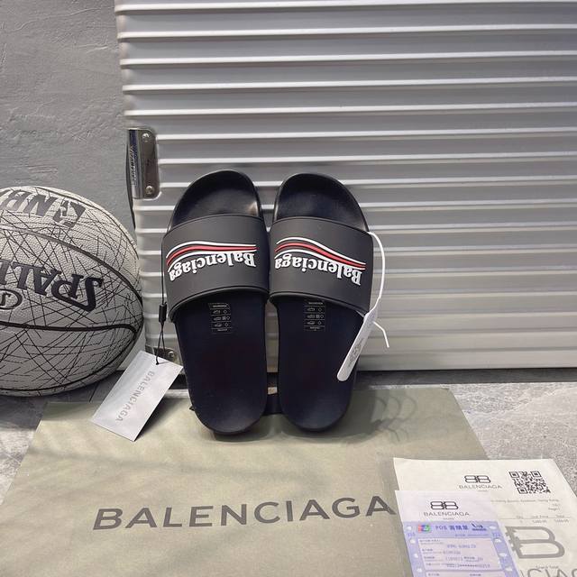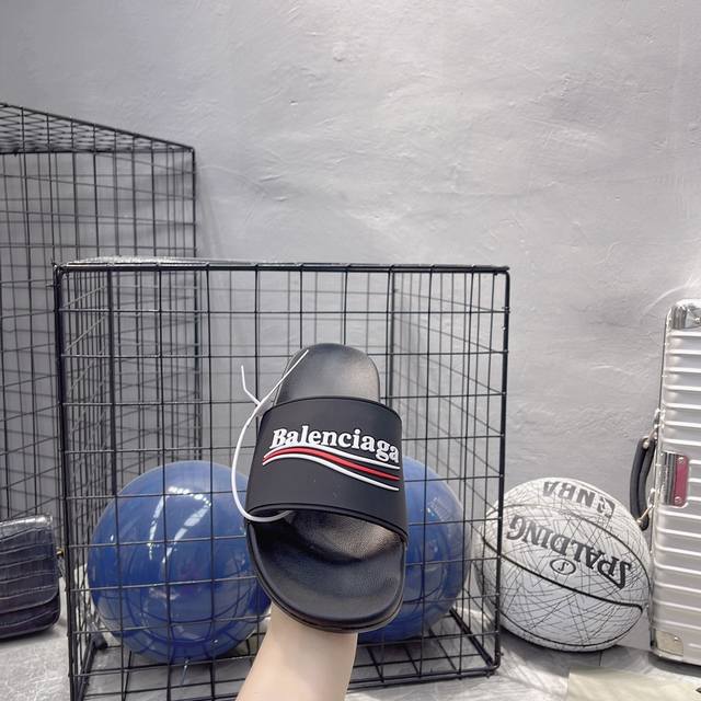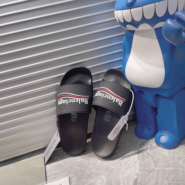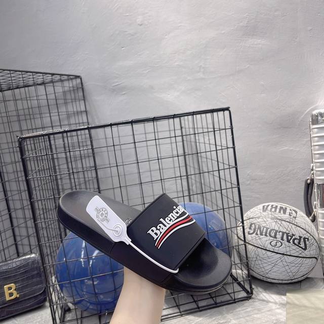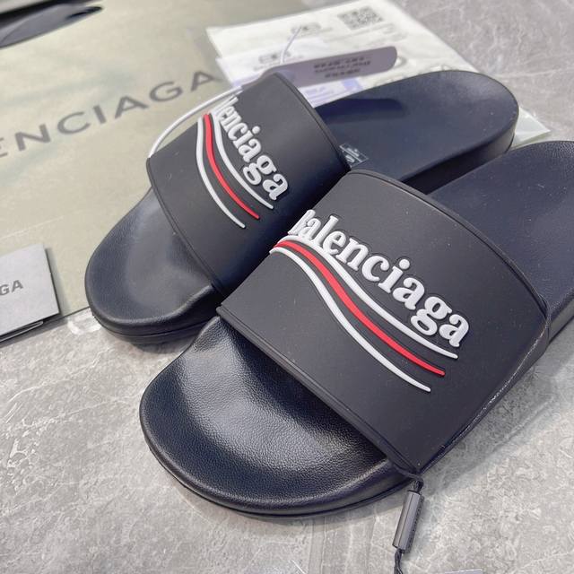 出厂 Balenciaga 巴黎世家 潮品情侣拖鞋 Balenciaga Political Campaign 最新磨具开发 欧美名媛 明星 网红girl 大爱款 精致鞋面手工缝纫走线 蓬松柔软 亲肤柔软夏季必备款 时尚却不过分张扬 原版天然橡胶防滑耐磨底