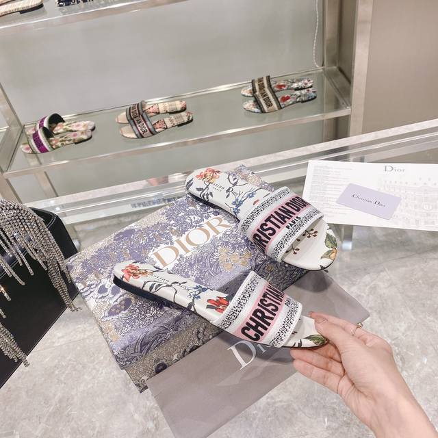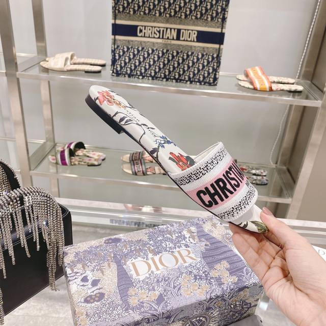 出厂: Dior春夏新款CD迪奥女士老花刺绣皮底拖鞋克里斯丁迪奥一直是华丽与高雅的代名词,在时尚殿堂一直是雄踞顶端特別值得一提的是:鞋底绣花图案,再現Chrst