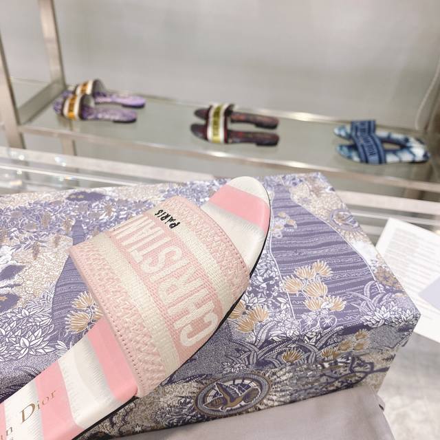 出厂: Dior春夏新款CD迪奥女士老花刺绣皮底拖鞋克里斯丁迪奥一直是华丽与高雅的代名词,在时尚殿堂一直是雄踞顶端特別值得一提的是:鞋底绣花图案,再現Chrst