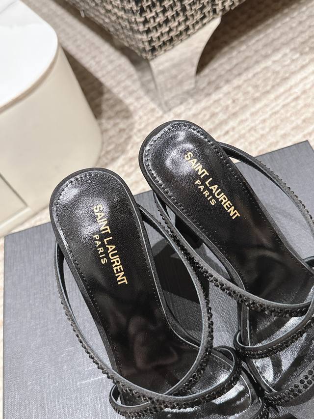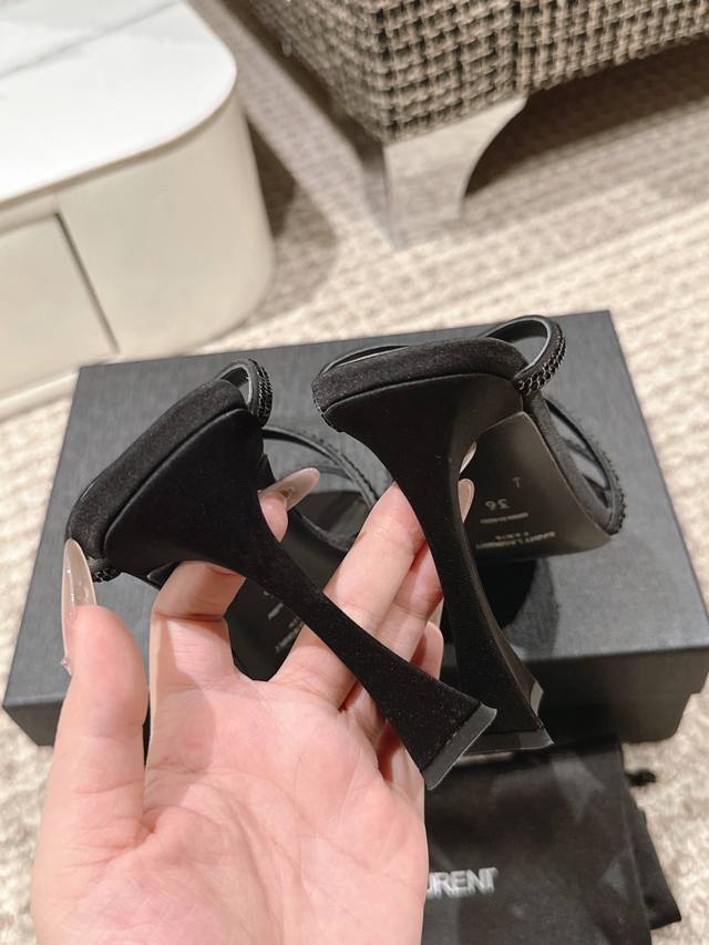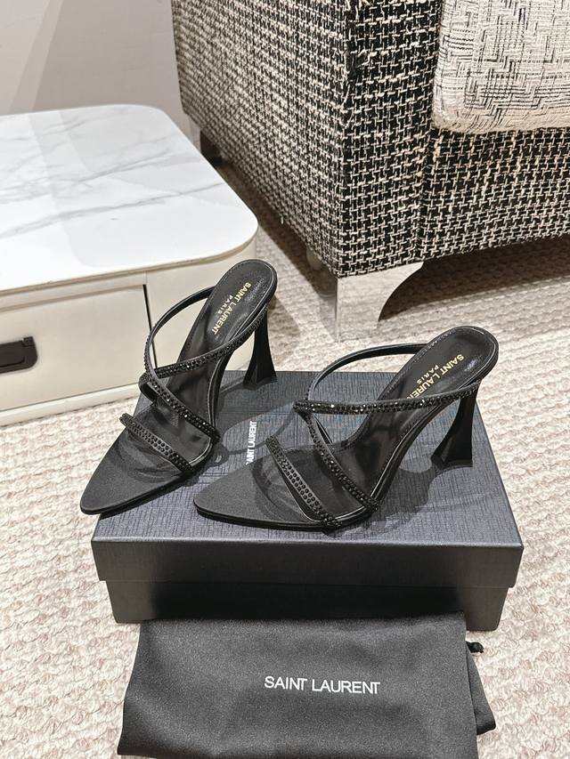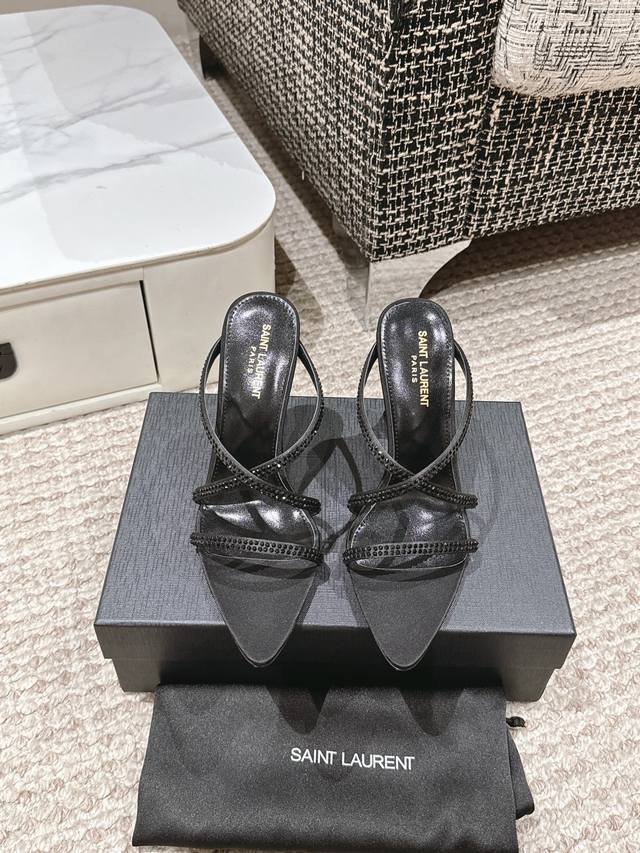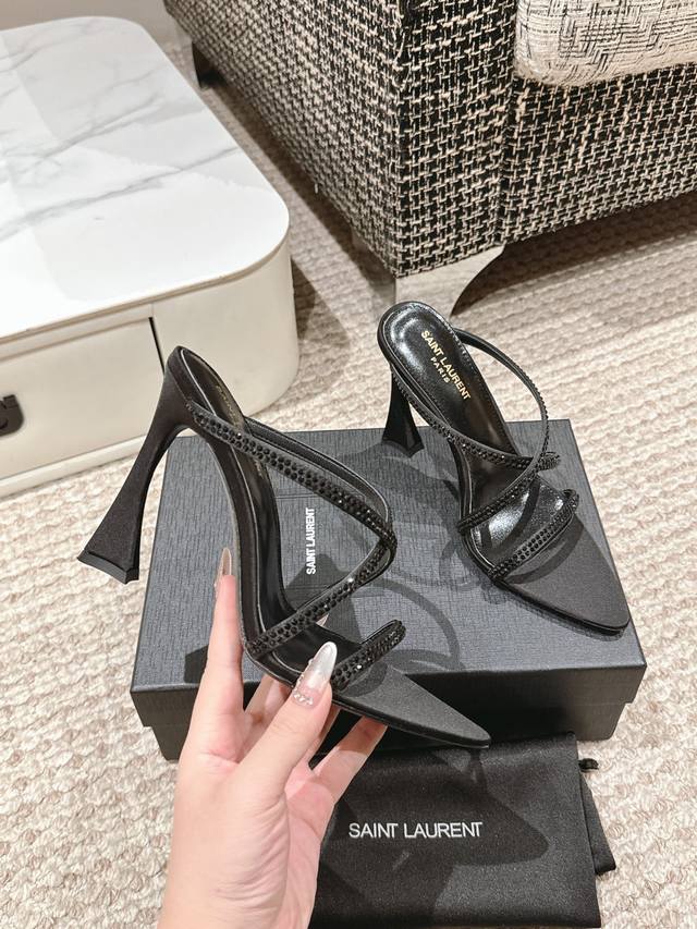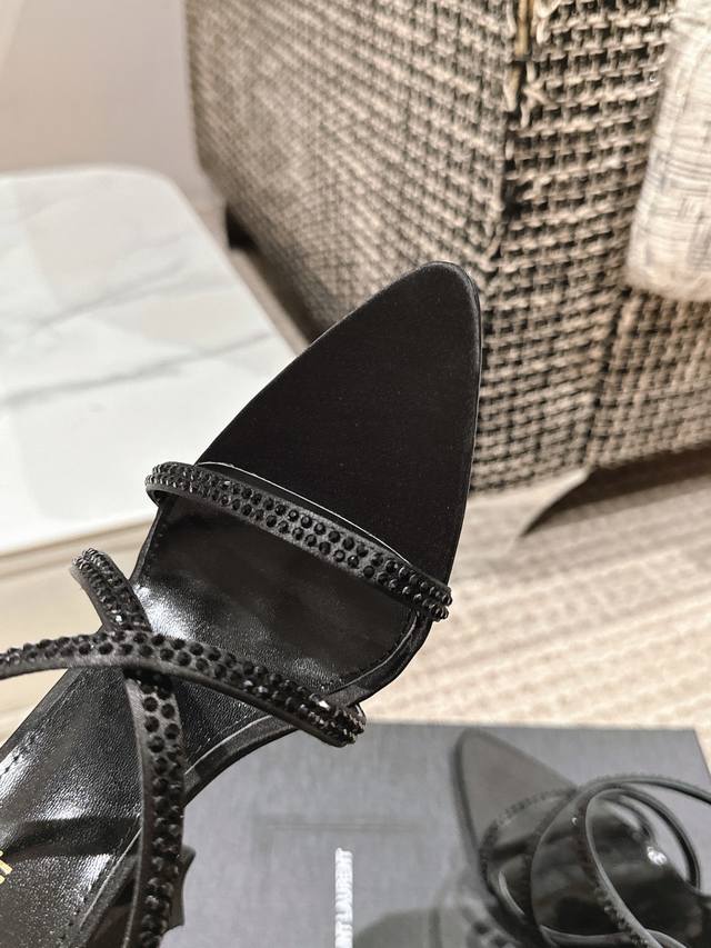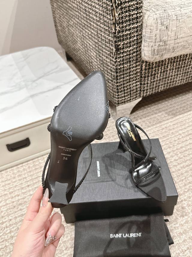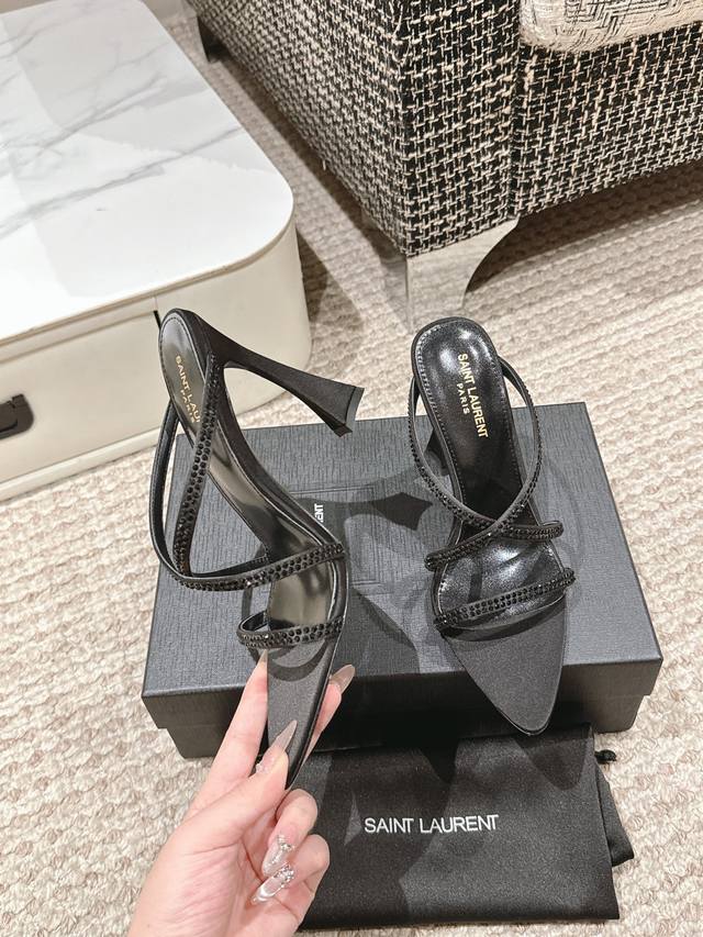 SAINT LAURENT 圣罗兰2025早春新款烫钻交叉高跟凉鞋尖头高跟鞋!