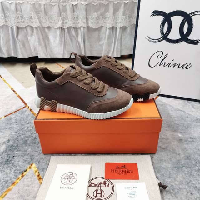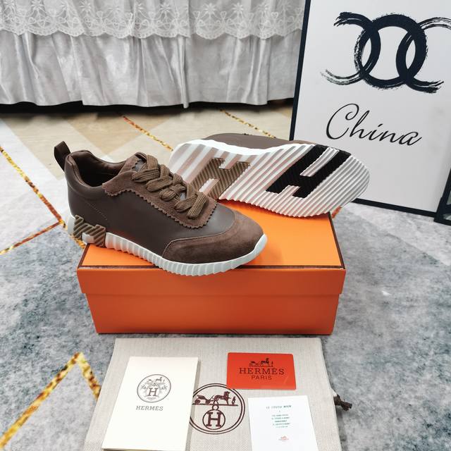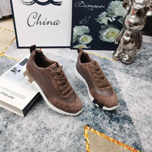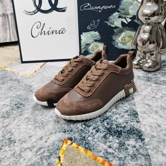 / 升级版厂价:女 男+10新配色出货 HERMES 低帮休闲鞋高版本 重磅出货面料:进口牛皮拼接羊京大底:超轻IP材质 踩棉花脚感 跟高:3.5cmSize:女3