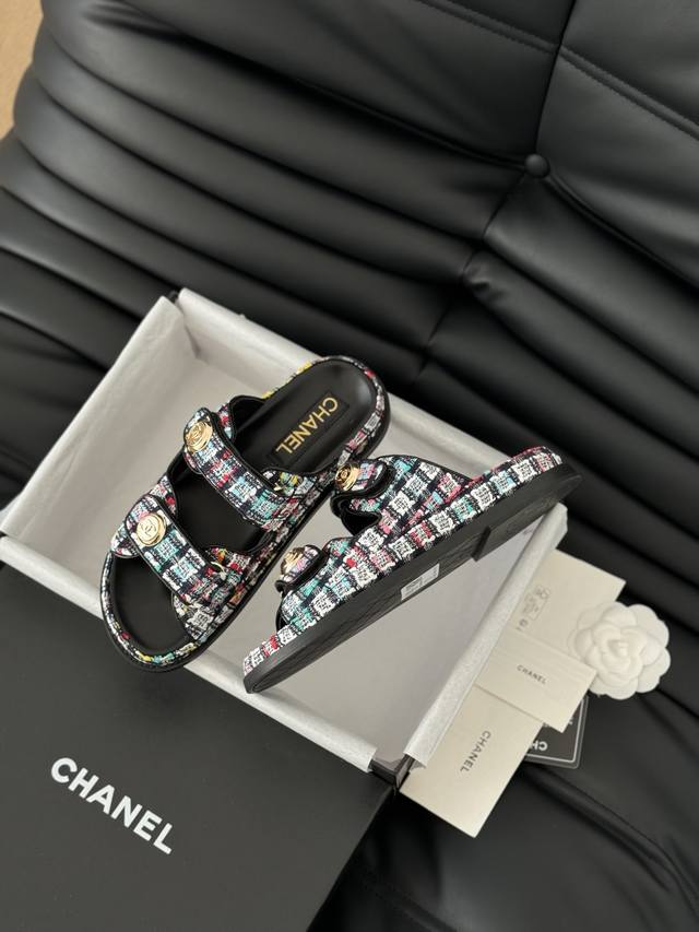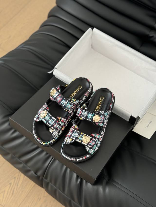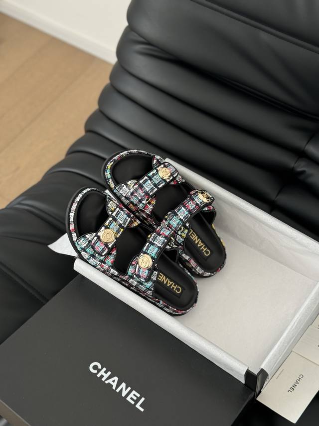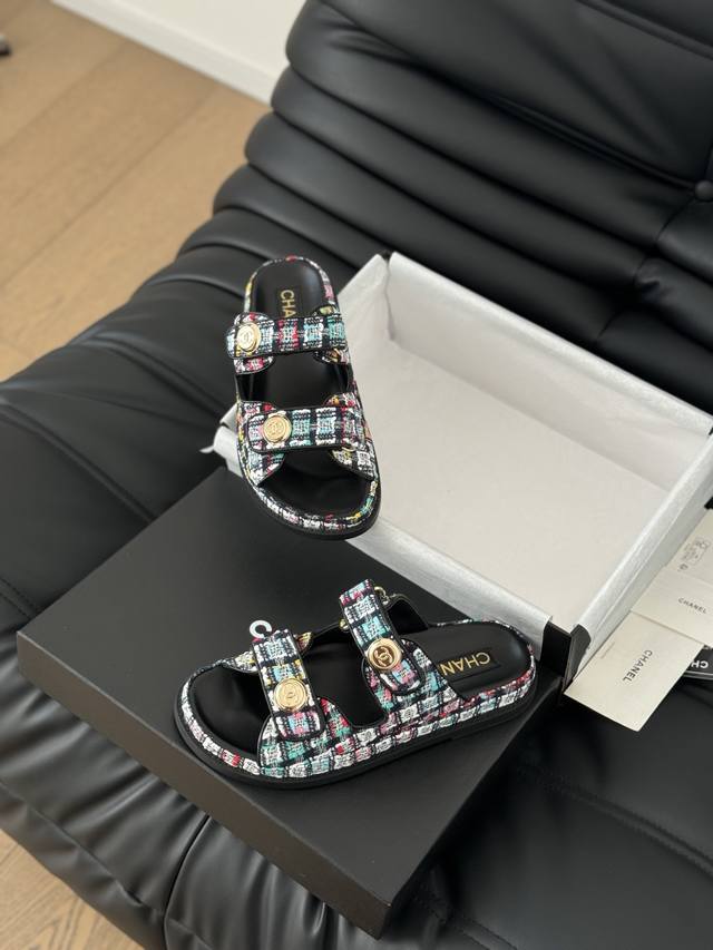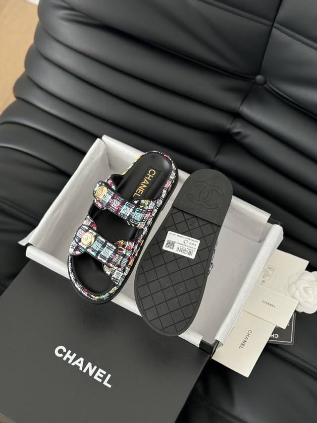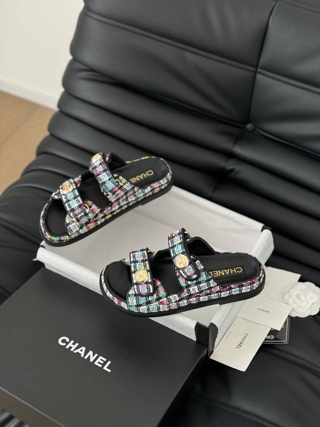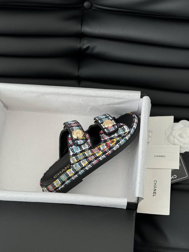 / 半拖 凉鞋 发泡大底版本 Chanel 25新魔术贴凉鞋版面!顶级对版货!所有的颜色我家都有!鞋面进口面料,垫脚内里羊皮,原版五金扣。均配专柜顶级包装!Size