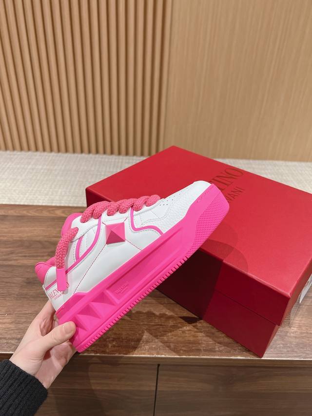 华伦天奴新款铆钉加大ONE STUD XL低帮运动鞋半哑光工艺效果处理超大铆钉细节,顶级印刷立体LOGO 增高松糕超高5CM Size:35-45