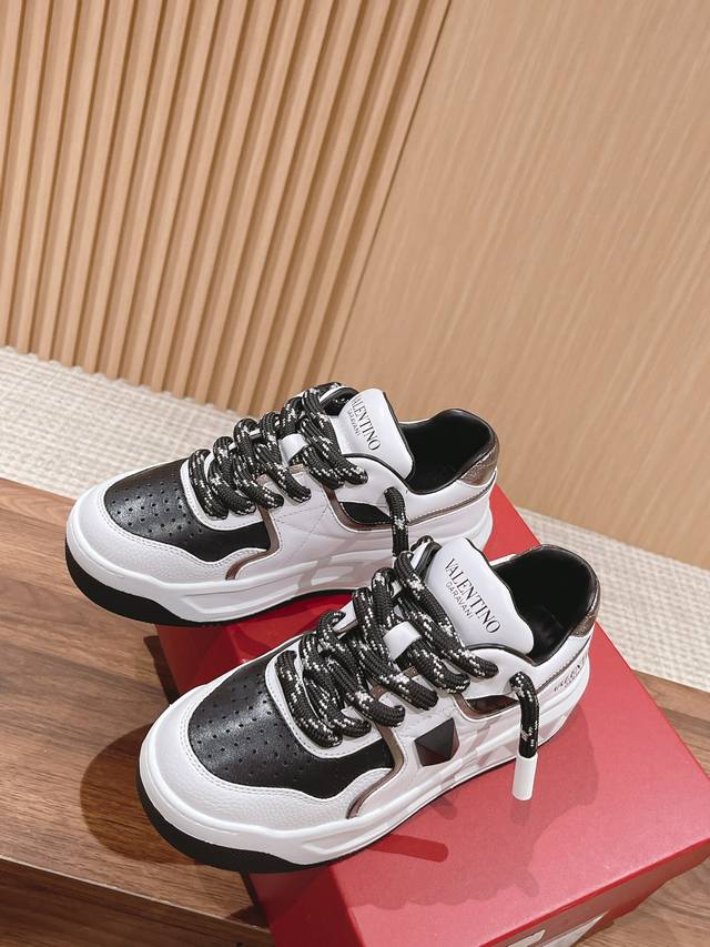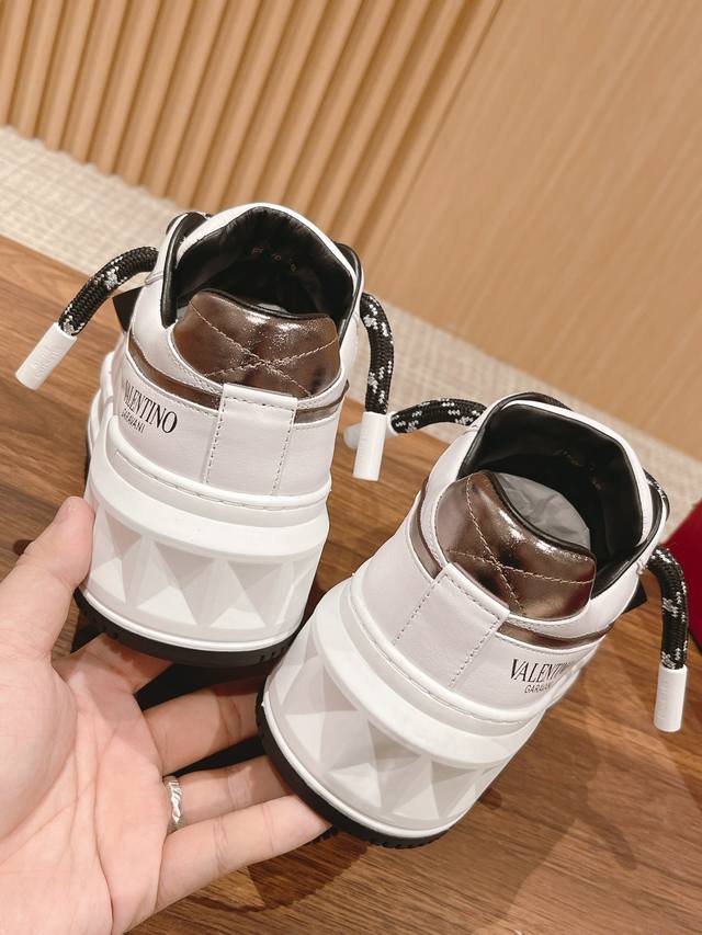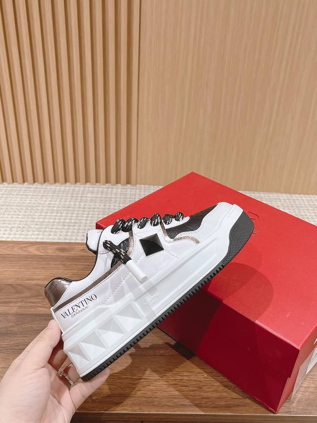 华伦天奴新款铆钉加大ONE STUD XL低帮运动鞋半哑光工艺效果处理超大铆钉细节,顶级印刷立体LOGO 增高松糕超高5CM Size:35-45