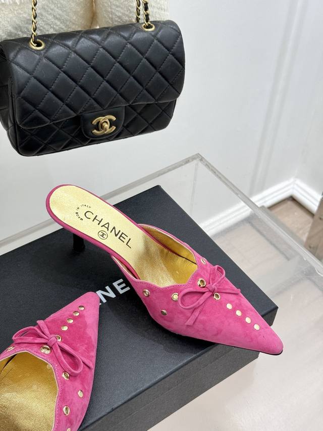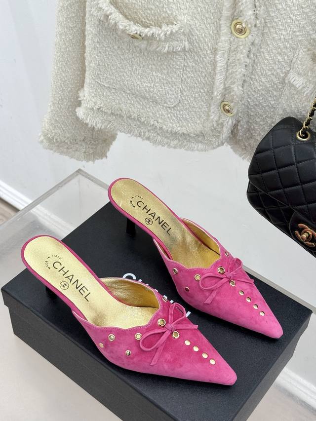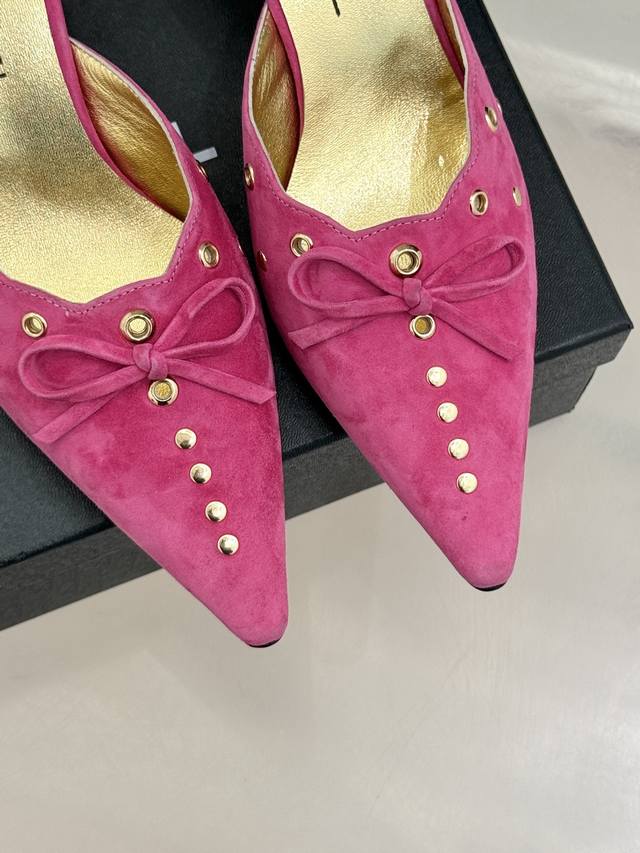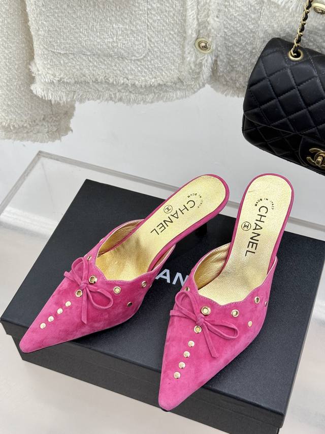 新品蝴蝶结尖头高跟半拖