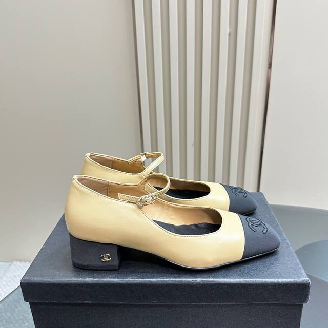 拼色方头丽珍鞋