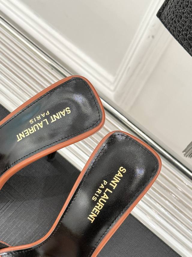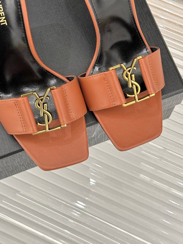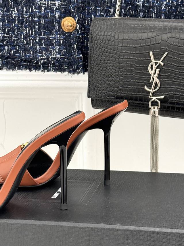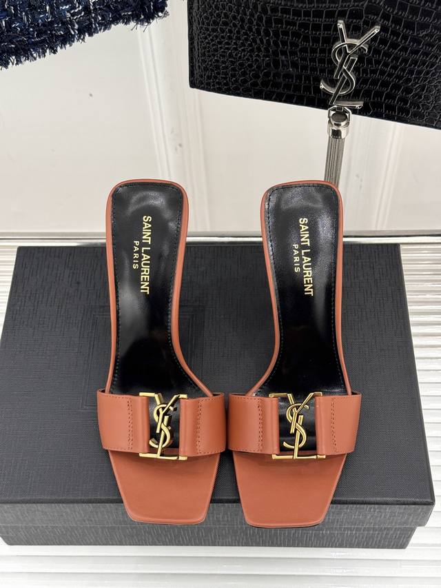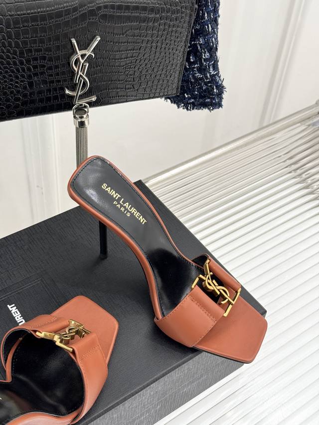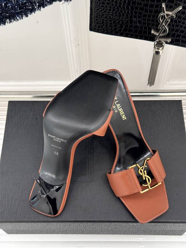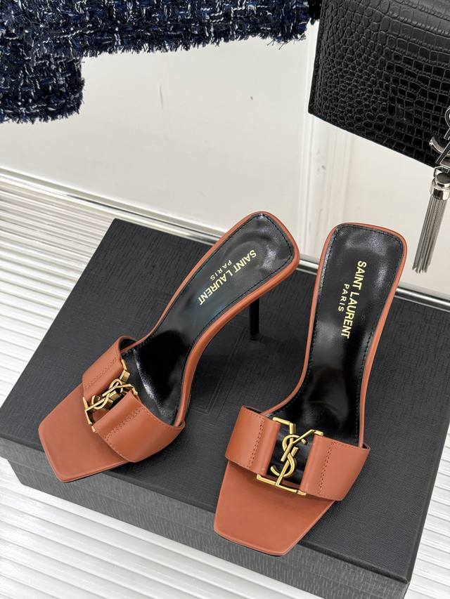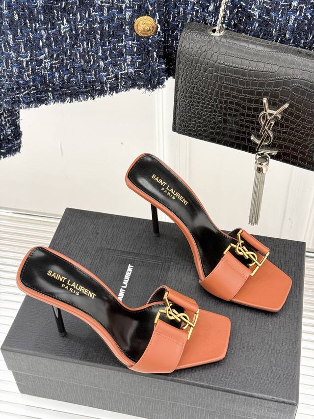Saint Lauren*YSL圣罗兰经典春夏金属字母logo高跟拖鞋