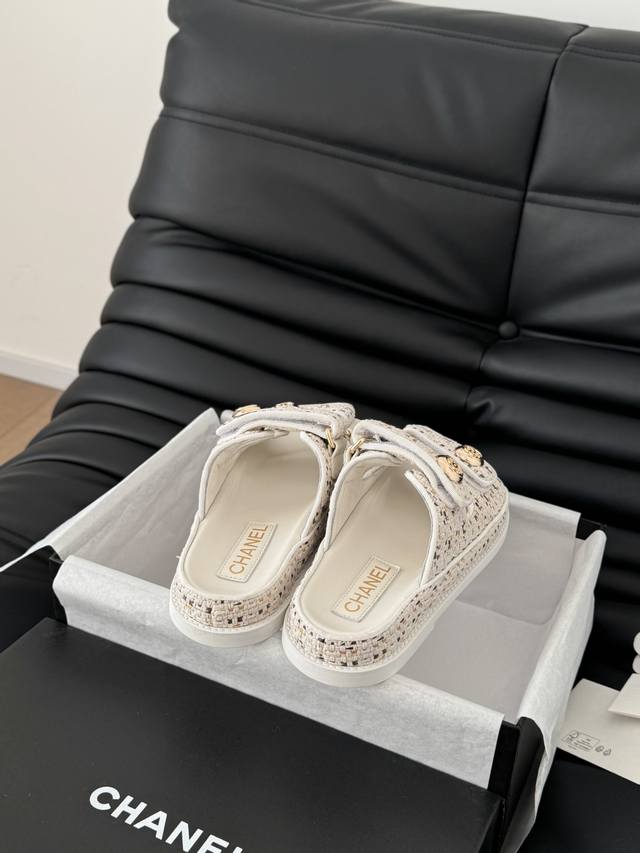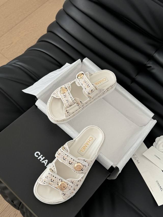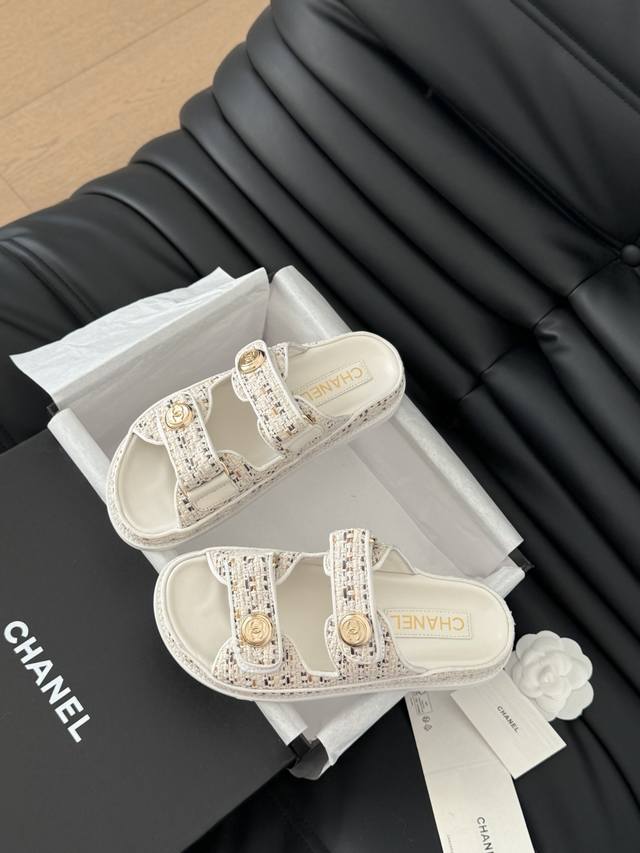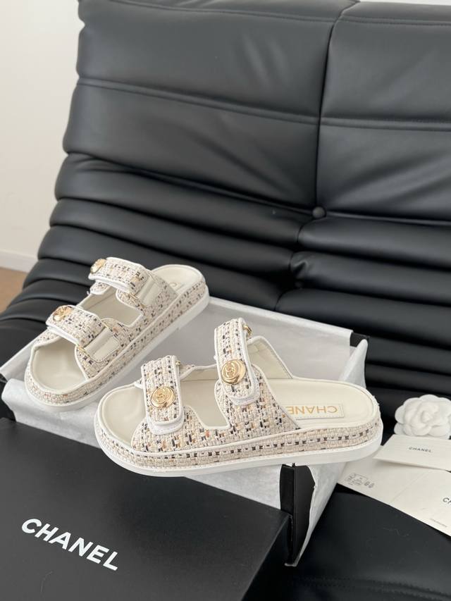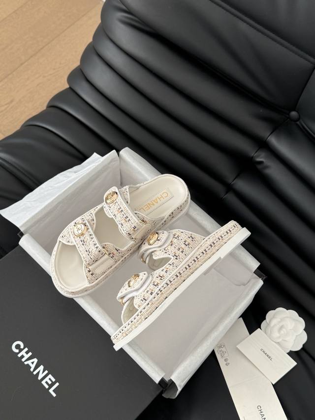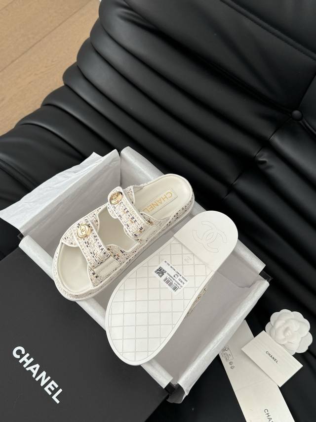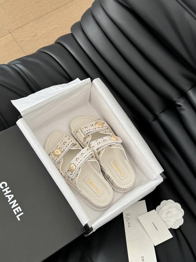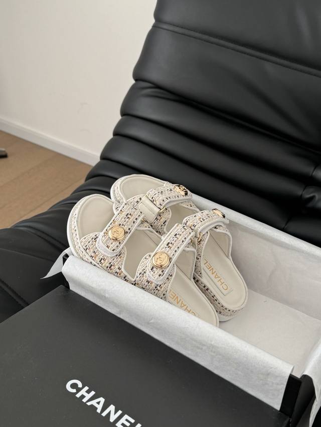 / 发泡大底版本 Chanel 25新魔术贴凉鞋版面!顶级对版货!所有的颜色我家都有!鞋面进口面料,垫脚内里羊皮,原版五金扣。均配专柜顶级包装!Size:35-39