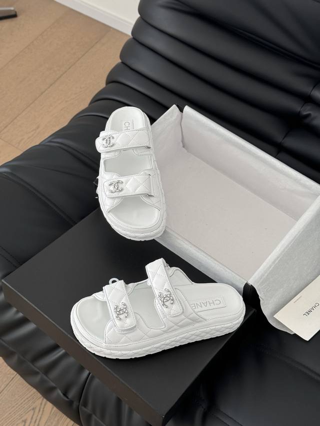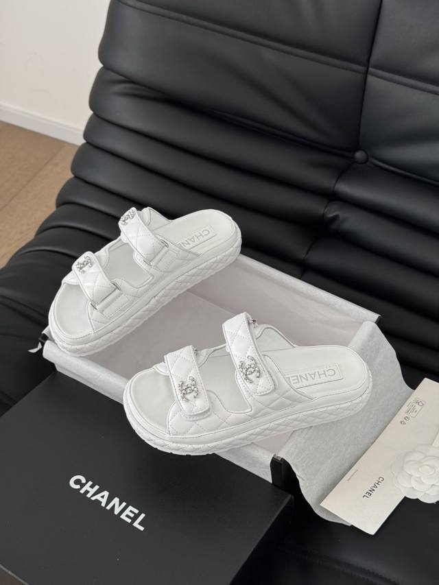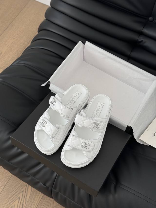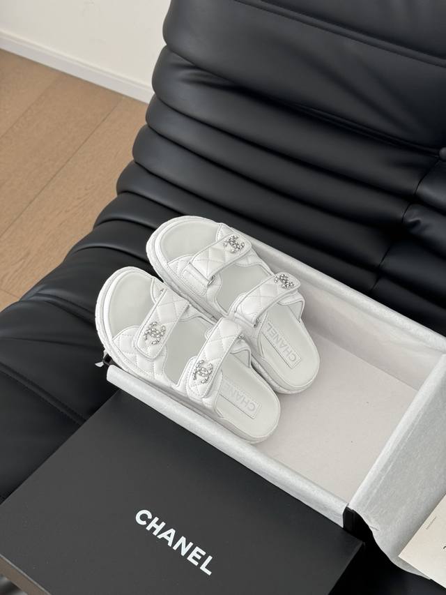 / 发泡大底版本 Chanel 25新魔术贴凉鞋版面!顶级对版货!所有的颜色我家都有!鞋面进口面料,垫脚内里羊皮,原版五金扣。均配专柜顶级包装!Size:35-39