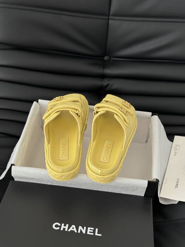 Chanel 25C早春度假系列拖鞋这是甜心芭比的一季又要让多少香奶奶女孩少女心泛滥让人眼前一亮的感觉经典的大标设计...