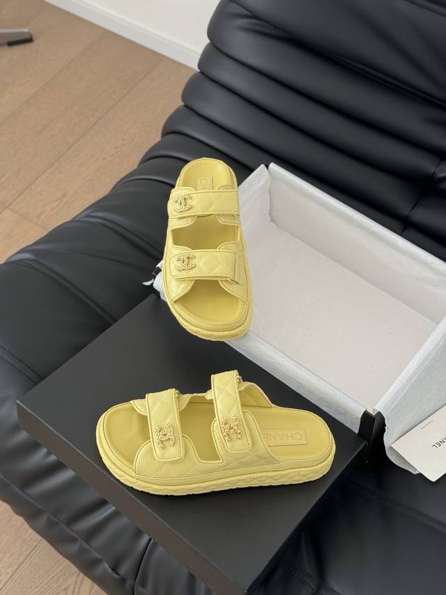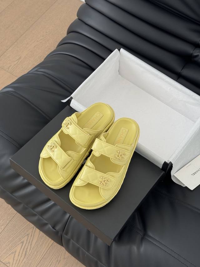/ 发泡大底版本 Chanel 25新魔术贴凉鞋版面!顶级对版货!所有的颜色我家都有!鞋面进口面料,垫脚内里羊皮,原版五金扣。均配专柜顶级包装!Size:35-39