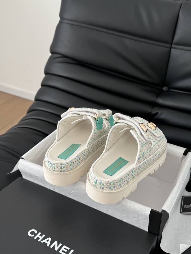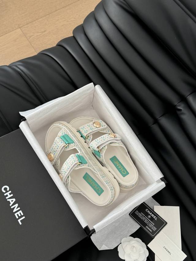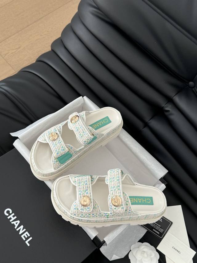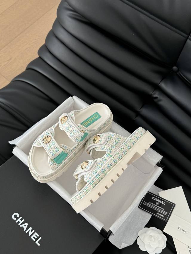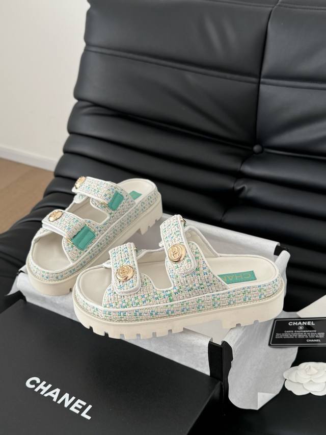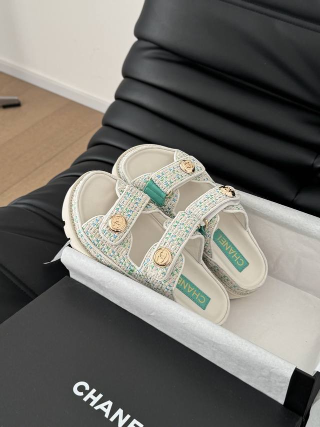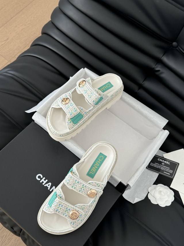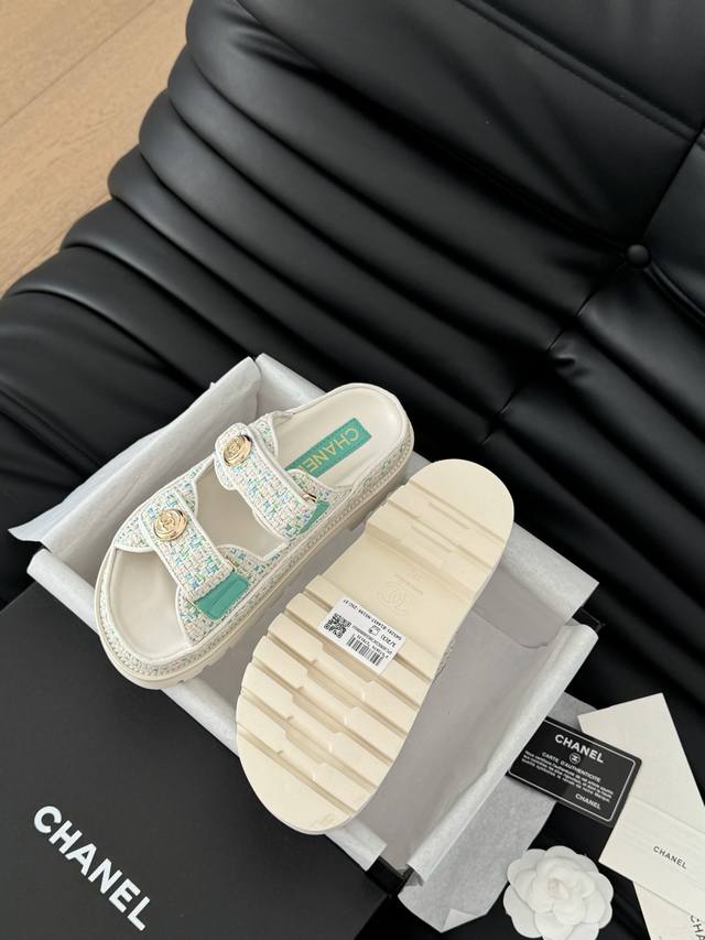 / 发泡大底版本 Chanel 25新魔术贴凉鞋版面!顶级对版货!所有的颜色我家都有!鞋面进口面料,垫脚内里羊皮,原版五金扣。均配专柜顶级包装!Size:35-39