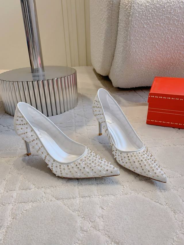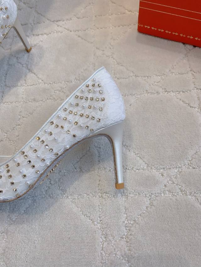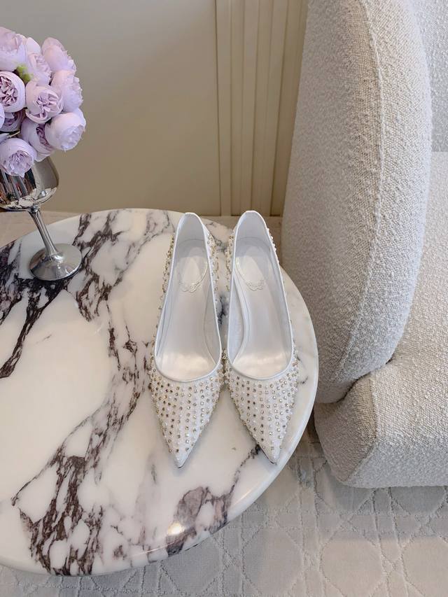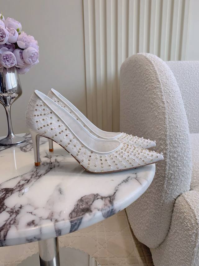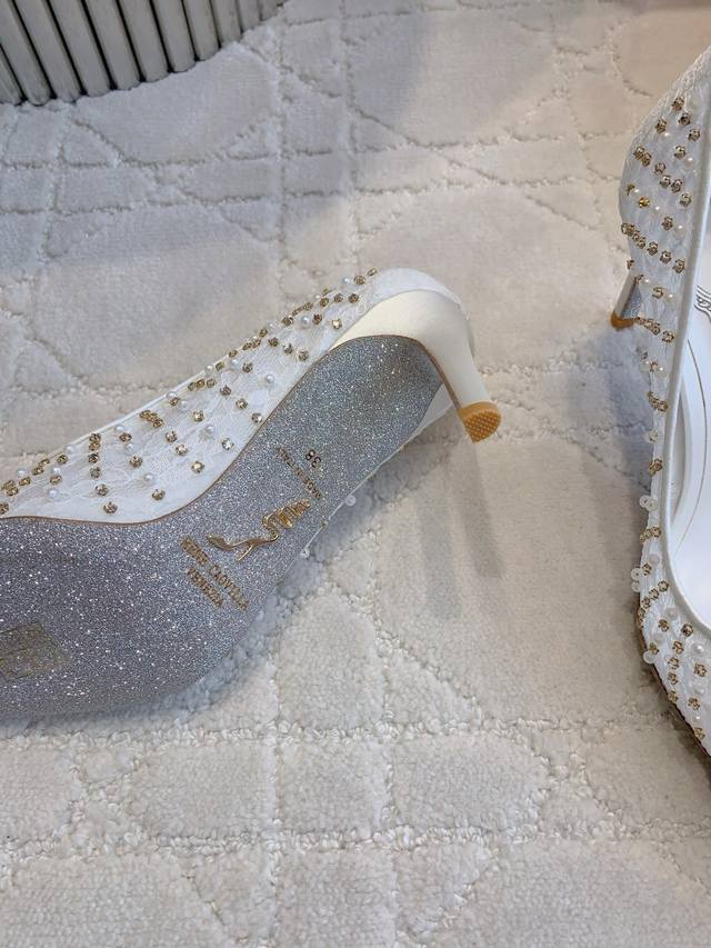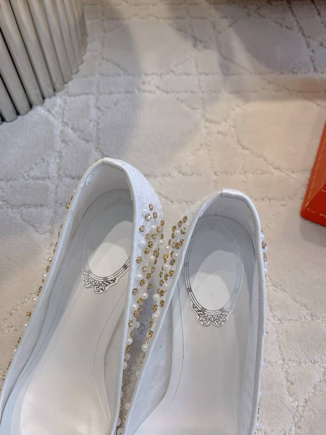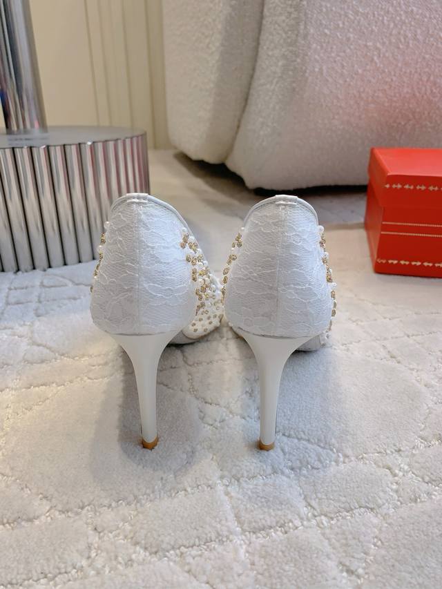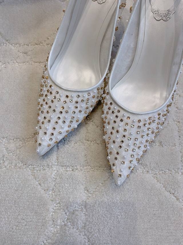 后空 单鞋 Ren* Caovill*重工珍珠水钻系列 bling bling精致逼人 堪称工艺品 面料进口高密度网纱 手工缝制水钻珍珠 垫脚羊皮 意大利真皮大
