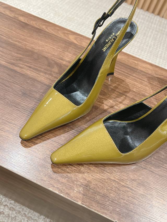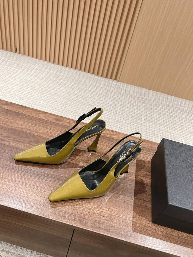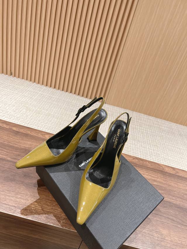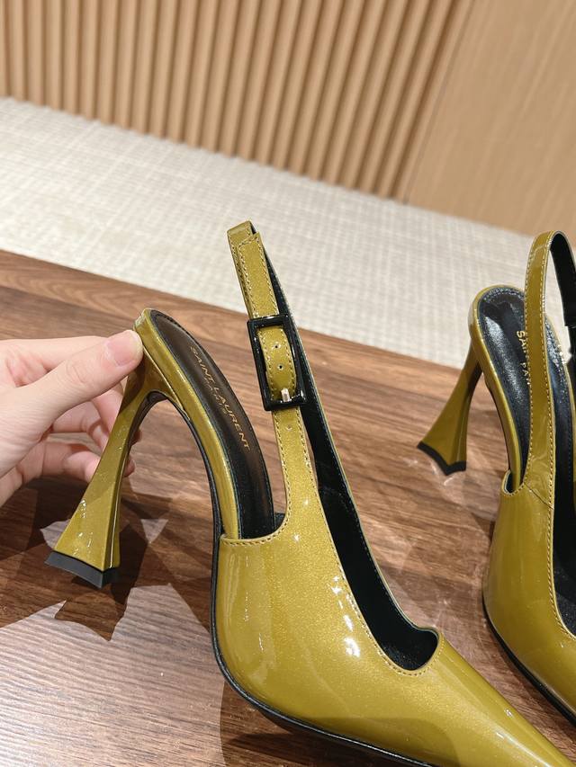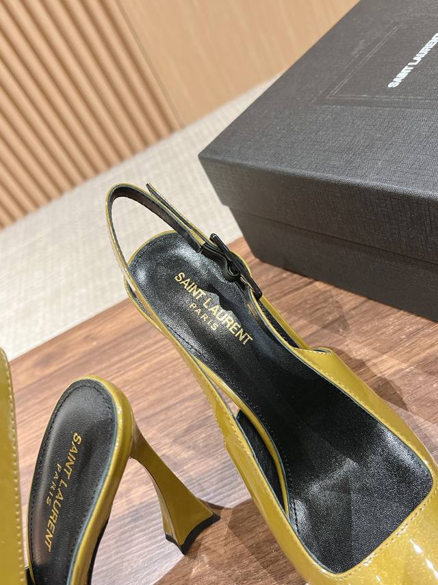 依日延续以往的高级和优雅ysl 马蹄鞋跟真的太好看啦! Saint Laurent 方形尖头露跟高跟鞋
