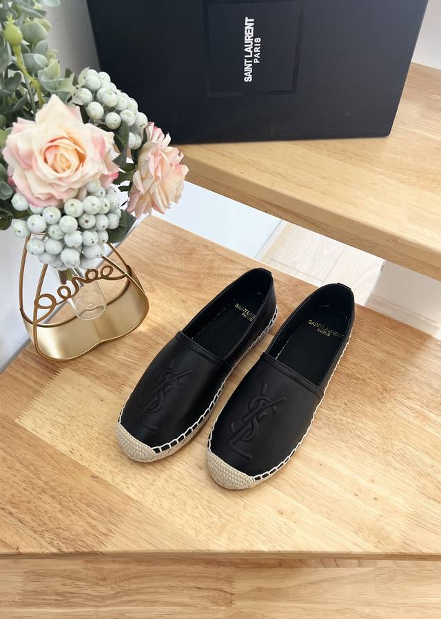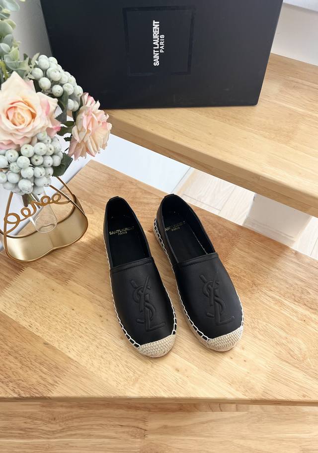 女款 男款 SAINT LAURENT 圣罗兰 年 早春 LOGO渔夫鞋 YSL标志、麻绳中底和内底。收起羊皮革橡胶鞋底码数:36-45西班牙制造