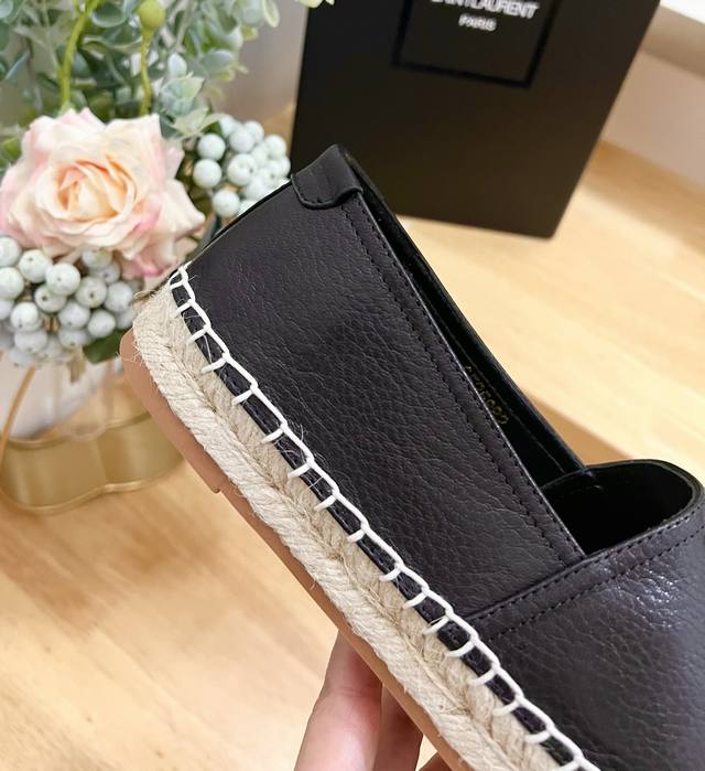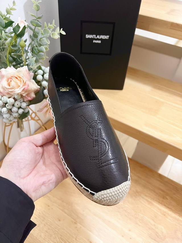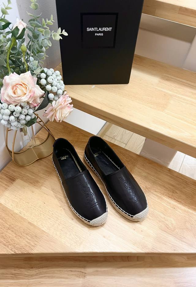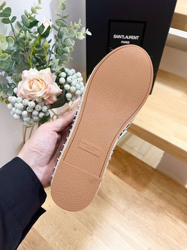 女款 男款 SAINT LAURENT 圣罗兰 2024年 早春 LOGO渔夫鞋 YSL标志、麻绳中底和内底。收起羊皮革橡胶鞋底码数:36-45西班牙制造