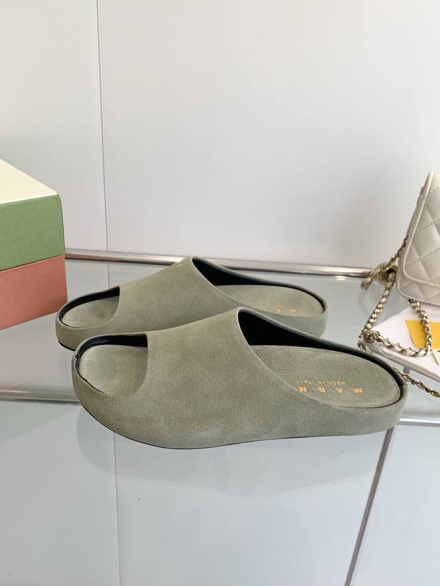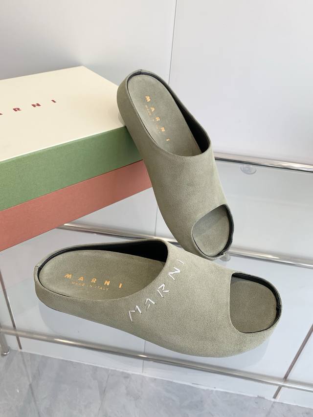 女 男 Marni新款香蕉拖鞋面马克线手工缝制LOGO