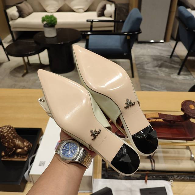 春夏新品, 顶级版本 实力来袭!“原版金属镜面TPU材料和超软牛漆皮看似简单实则制作难度非凡,原版鞋头扁尖形状楦条+金属小扣 是不是高端货对比细节便知分晓。尖尖鞋头与细跟相得益彰增添的气质与良好的舒适性勾勒出腿部纤细的线条同时又具有很好的包裹性!意大利专柜代购原版鞋开发,1比1照足原味复刻。 这一季的Prada款式设计上比原来还简单了,没有刻意追求潮或者sporty的感觉,整体自然,颜色上