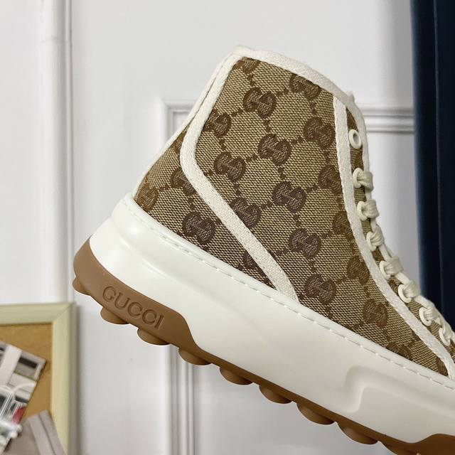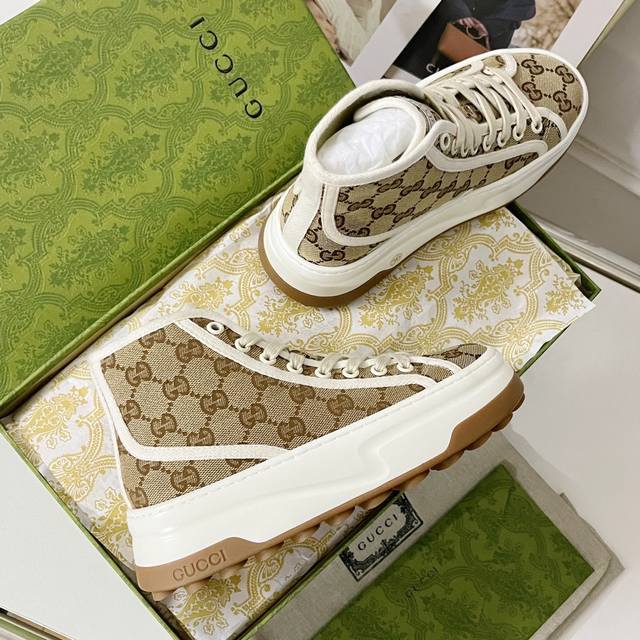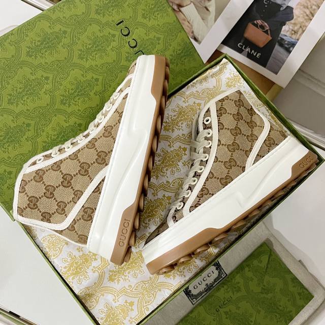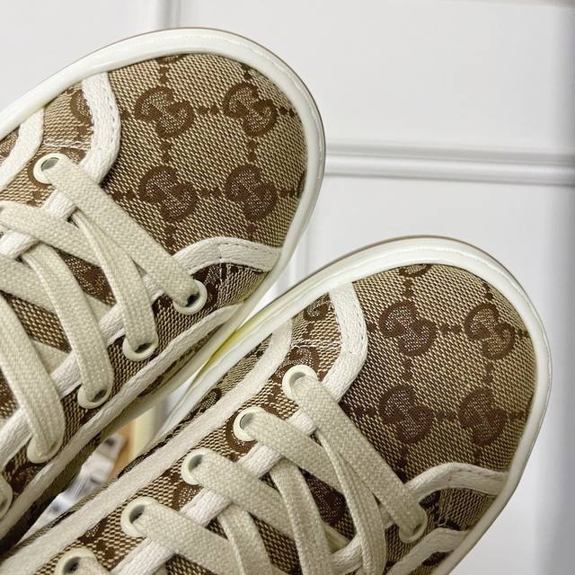 / 工厂价 ,男加10G家 Tennis 1977系列GG高帮厚底运动帆布鞋!购入原版1:1复刻,私磨原版大底,纯手工细节精致,上脚无可挑剔,扁平的鞋头很有复古的味