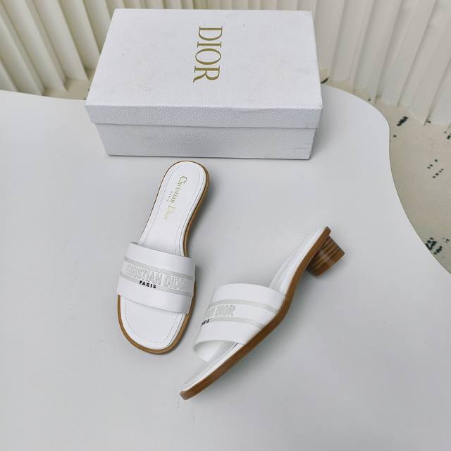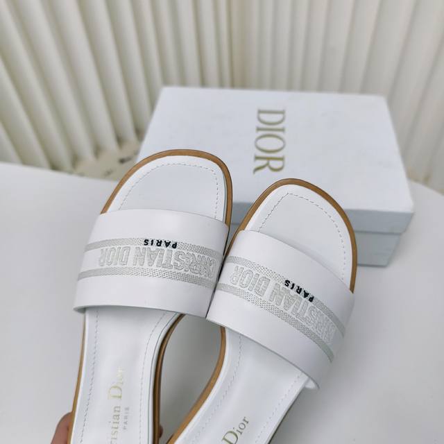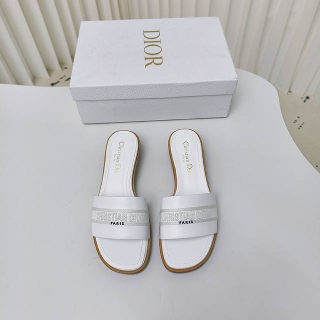 迪奥 Dior 2024 春夏新款 DWAY 平底一字拖拼色女鞋 CD字母logo立体刺绣圆柱跟凉鞋 方头粗跟果冻色露趾拖鞋 原版开发市面顶级版本