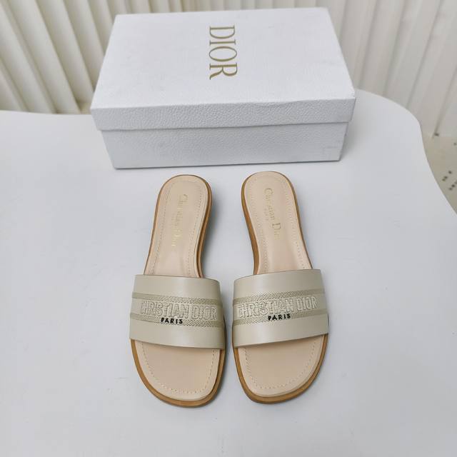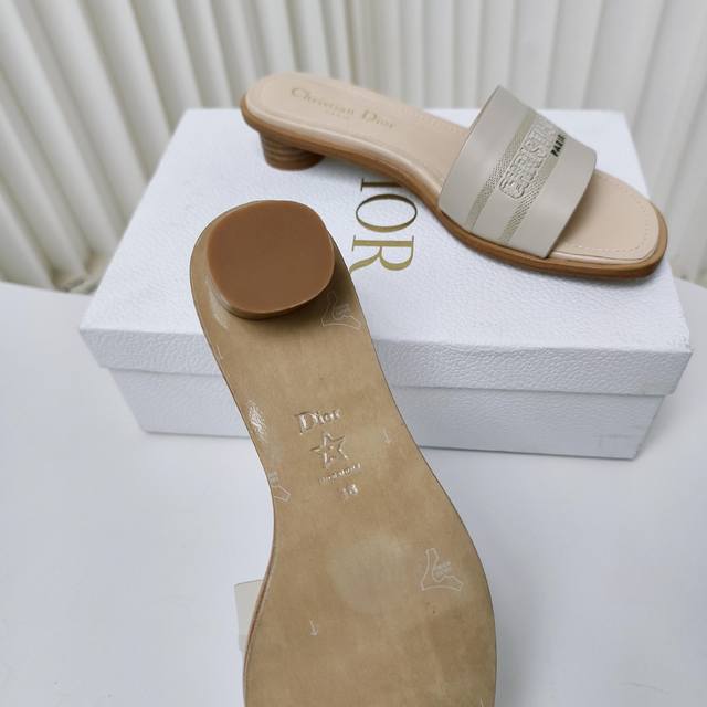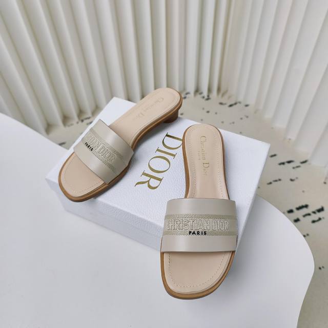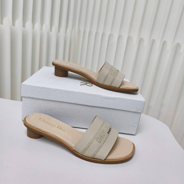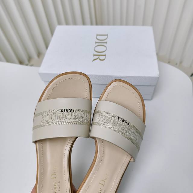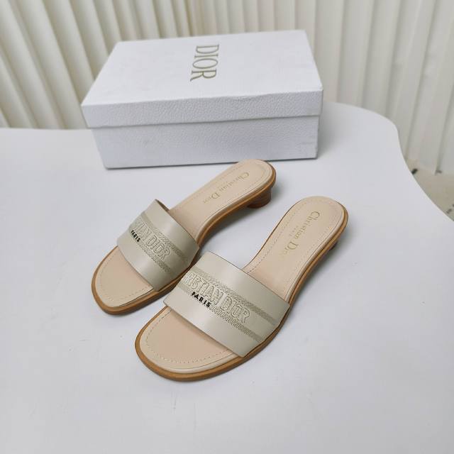 迪奥 Dior 2024 春夏新款 DWAY 平底一字拖拼色女鞋 CD字母logo立体刺绣圆柱跟凉鞋 方头粗跟果冻色露趾拖鞋 原版开发市面顶级版本