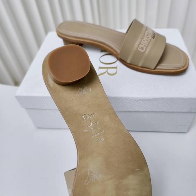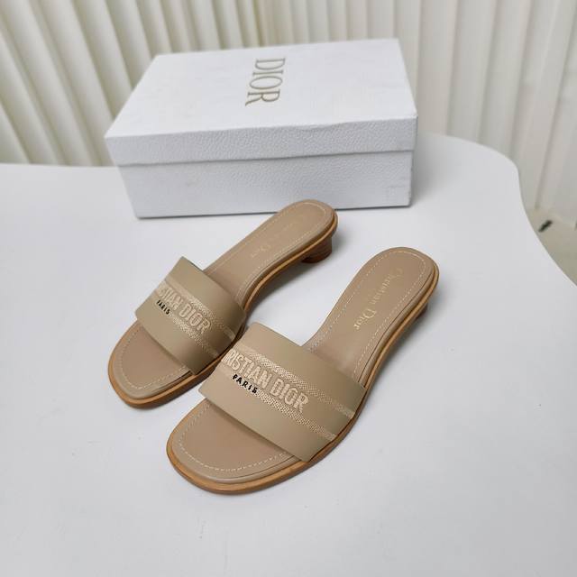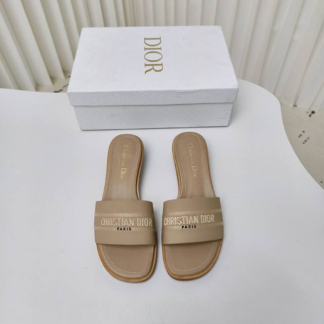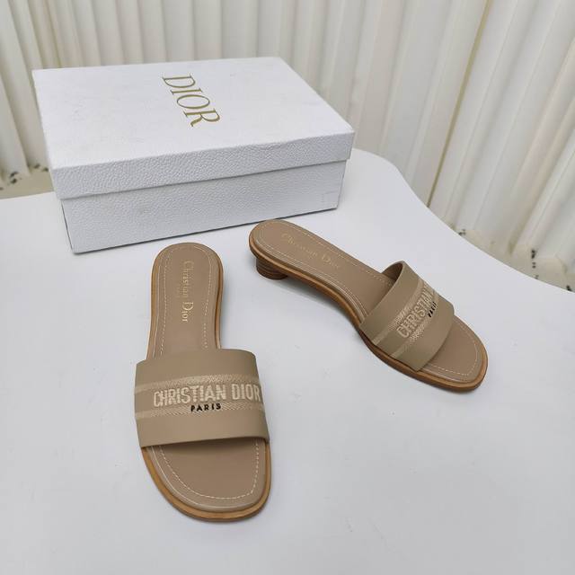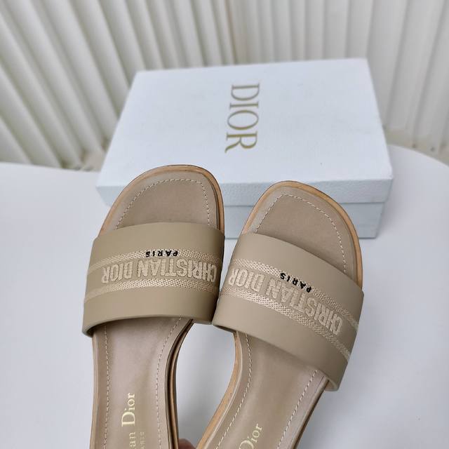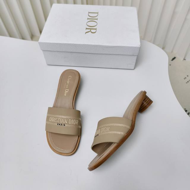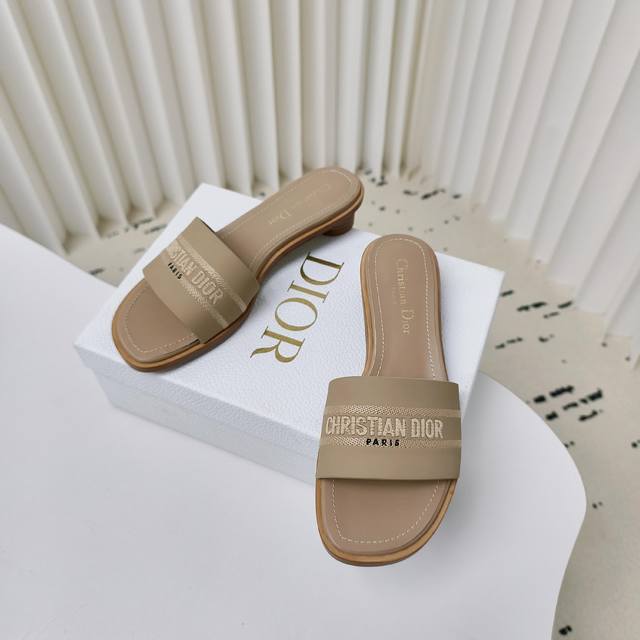 迪奥 Dior 2024 春夏新款 DWAY 平底一字拖拼色女鞋 CD字母logo立体刺绣圆柱跟凉鞋 方头粗跟果冻色露趾拖鞋 原版开发市面顶级版本