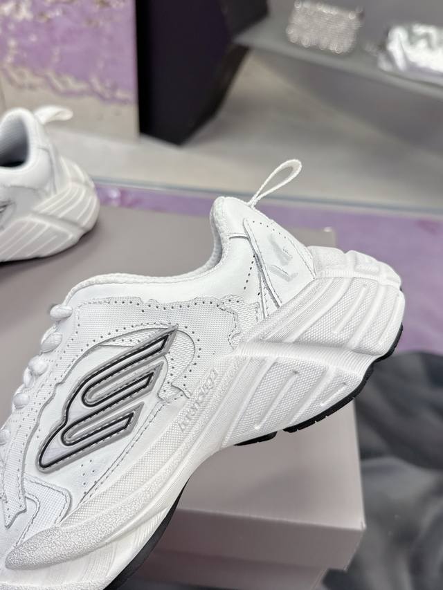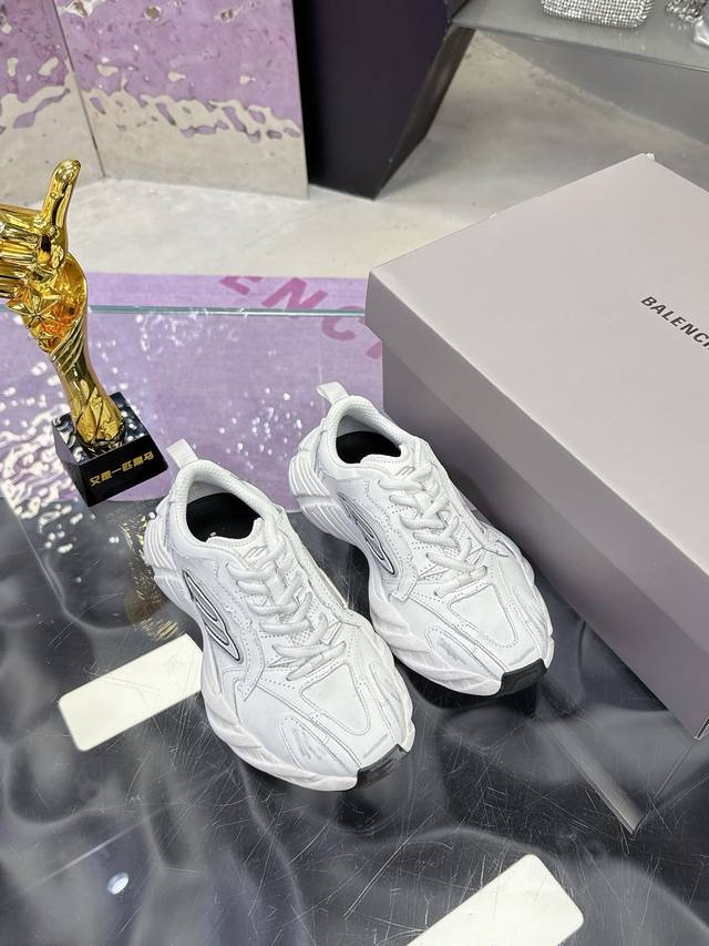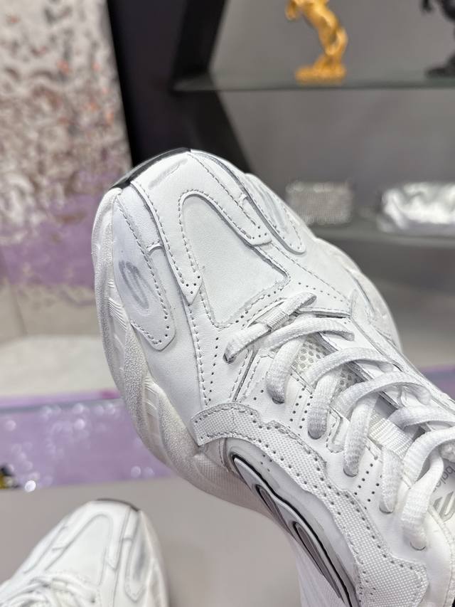 整体鞋型汲取了Balenciaga Track和Balenciaga Runner两款鞋型的创作思路 相当于把 Track鞋身的外框拆了下来 同时继承了 Runner的流线造型和 Track扁平的鞋头。原版定制进口牛皮面料 原版开模超轻MD组合 超级轻 超级舒适