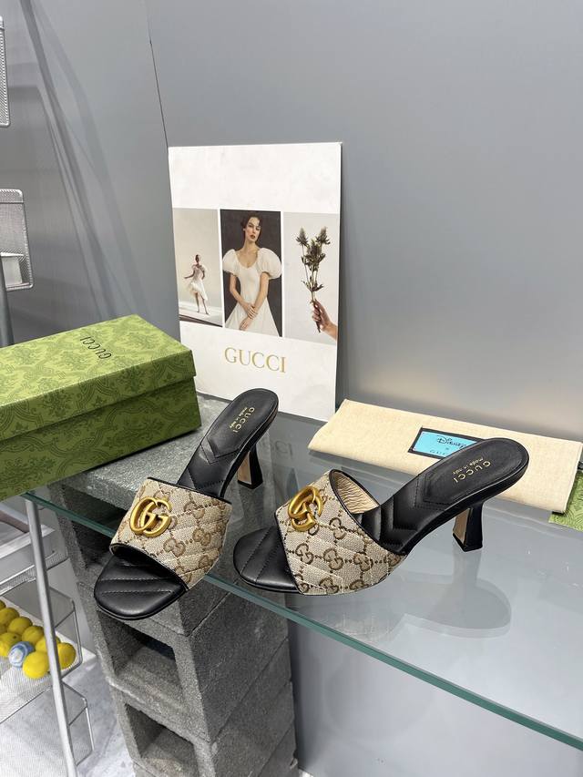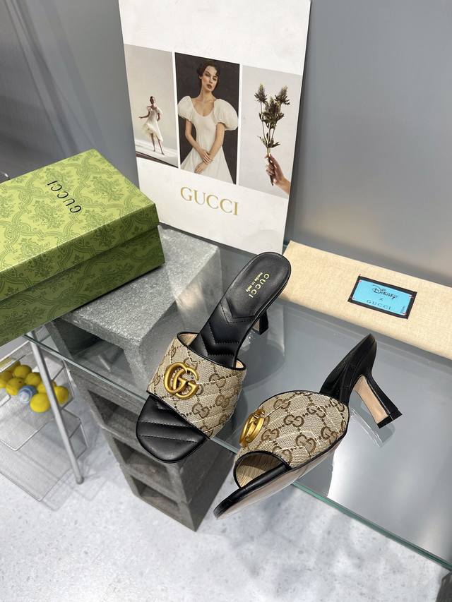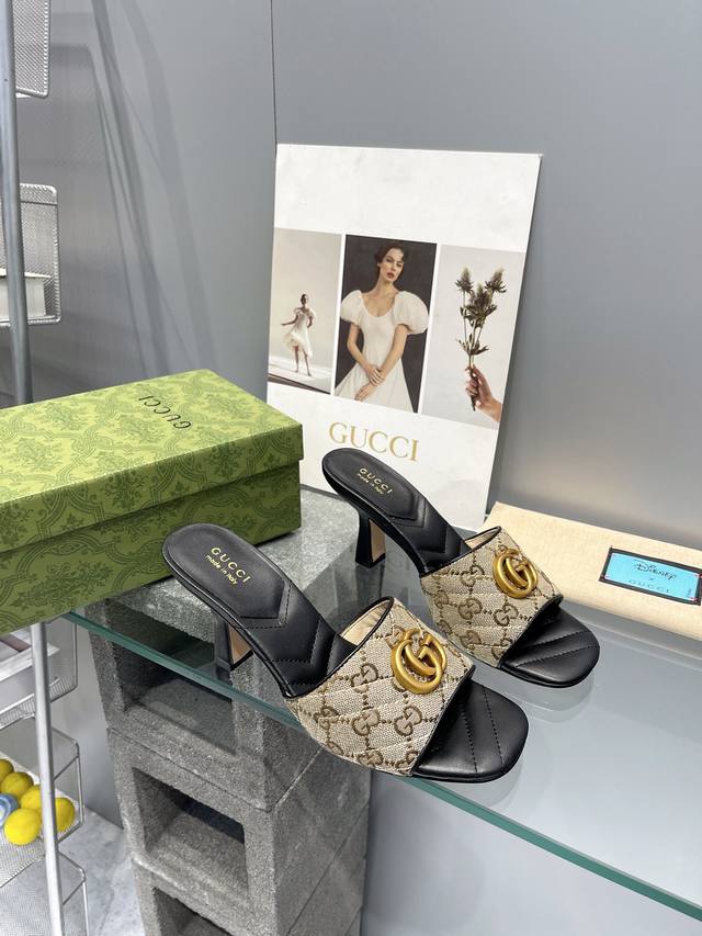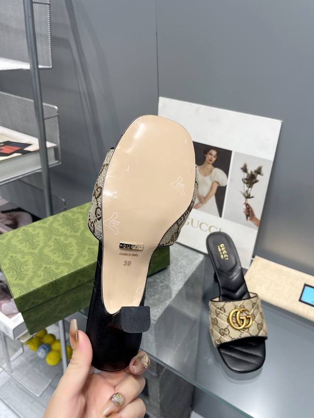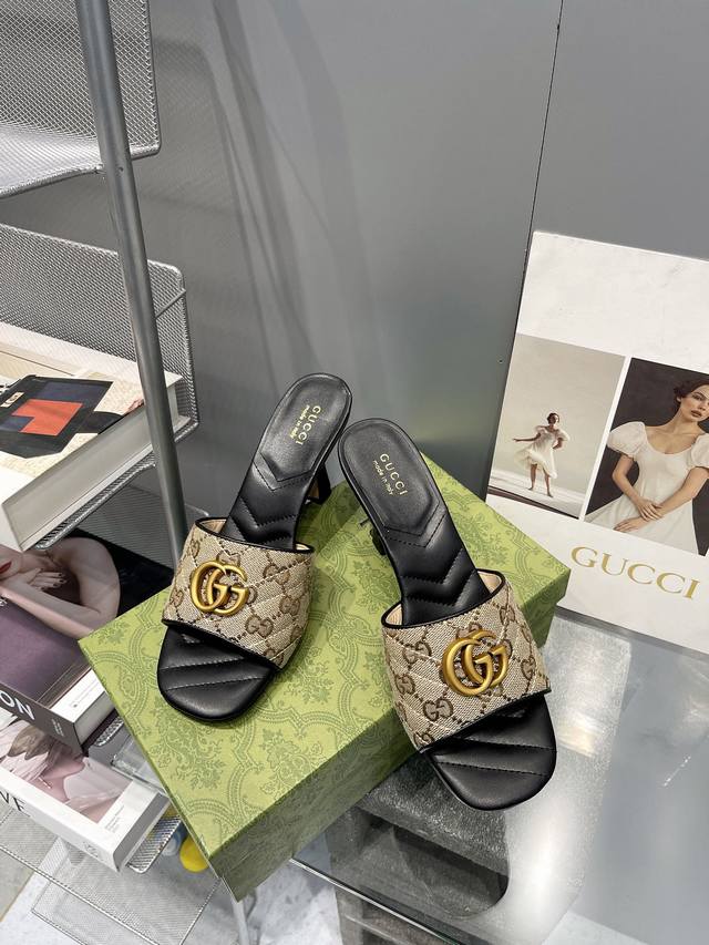 / 工厂价 Gucc*家经典双 G 扣细跟拖 高版本 长期做货 推荐给美眉们 一定要试试这款拖鞋 又一款心头爱 ~版型超正 做工细节完美 ,上脚非常舒适 高雅百搭。