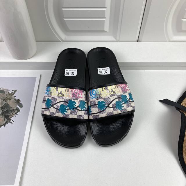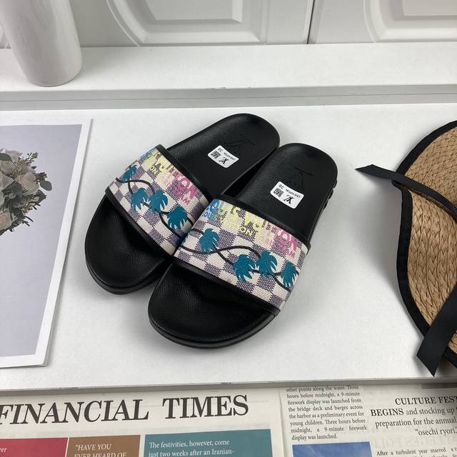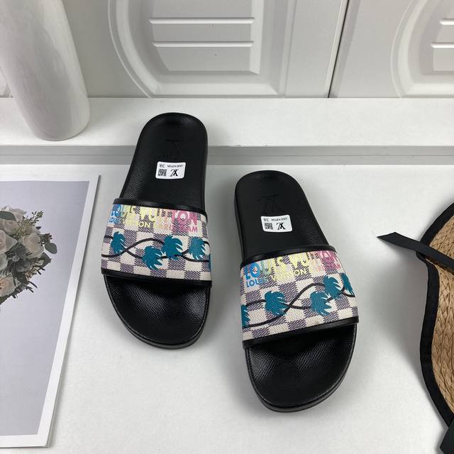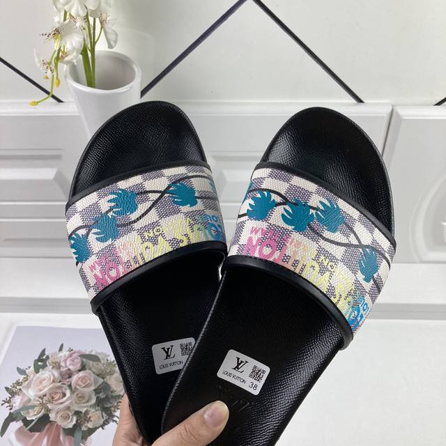 工厂价 LOUIS VUITON 路易威登情侣拖鞋,原版1.1订做,专柜经典款。鞋身高温附带logo,大底专柜附带logo ,任何细节都不错过 这款拖鞋专柜特别