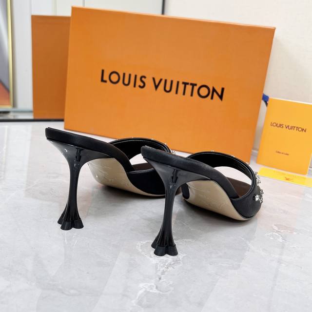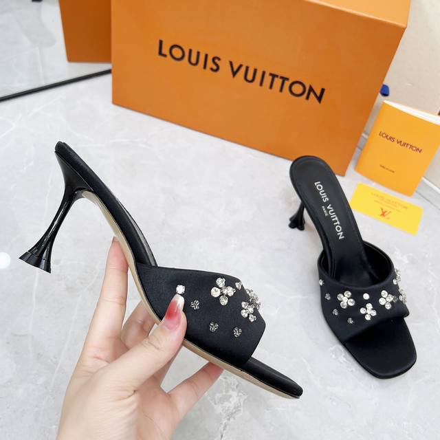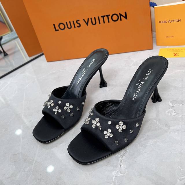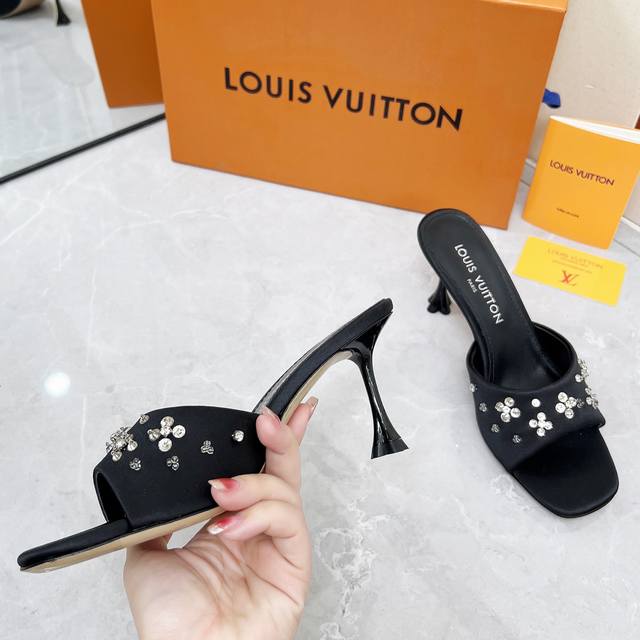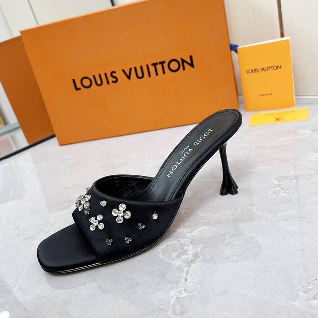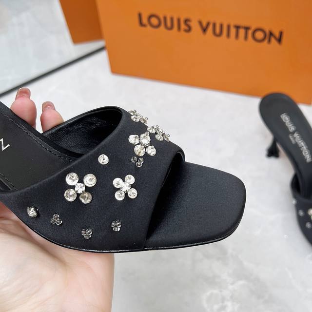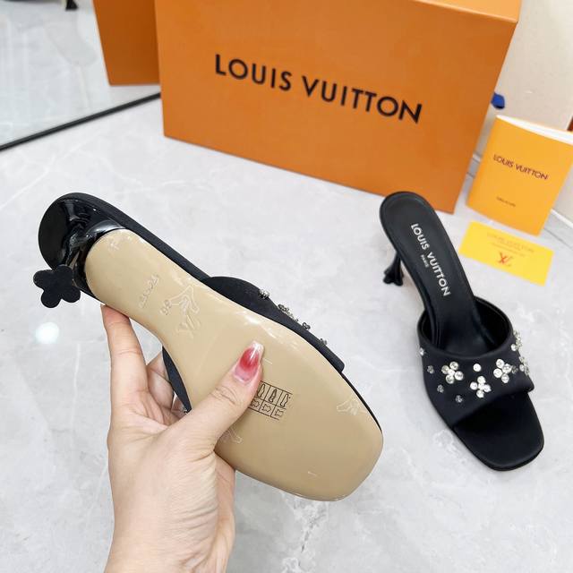 工厂价 LOUIS VUITTON 路易威登 新款拖鞋鞋面:真丝内里:羊皮 鞋底:意大利真皮大底 跟高:5.5cm 7.5cm码数:35-42