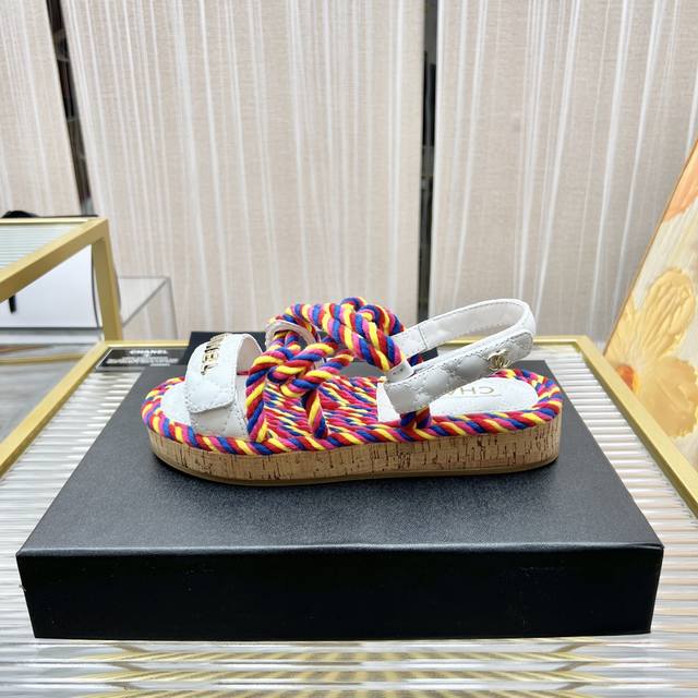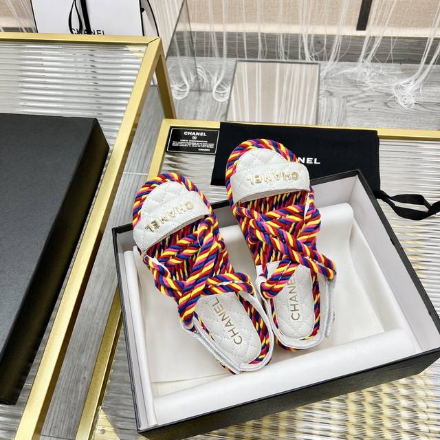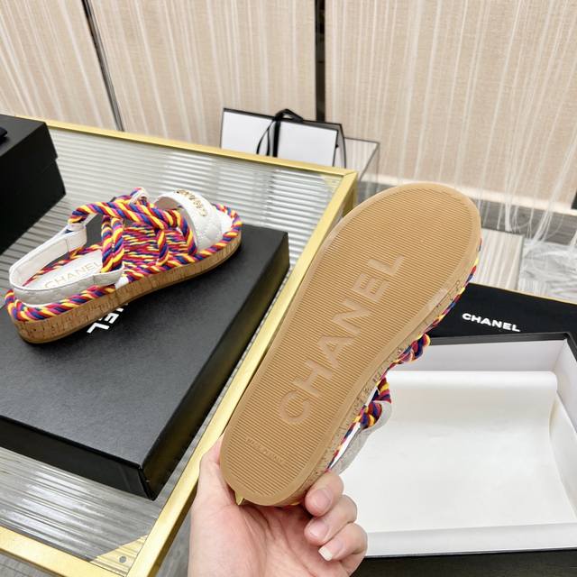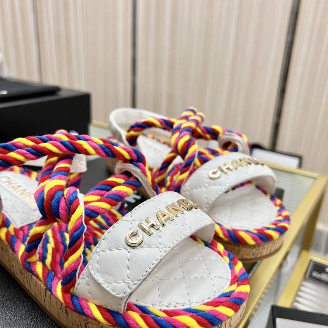 / 工厂凉鞋p Chanel夏日新款草绳魔术贴凉鞋草绳这款是菱格纹小羊皮 踩上超舒服凉鞋都是美眉们必不可少的出行单品每一个你都是特别的.请享受这一刻闪亮码数:35~