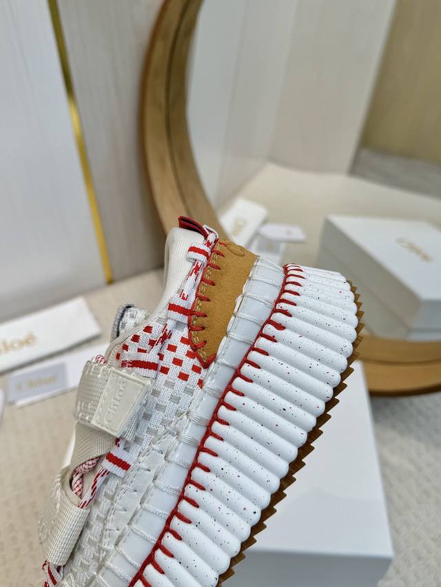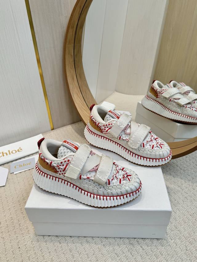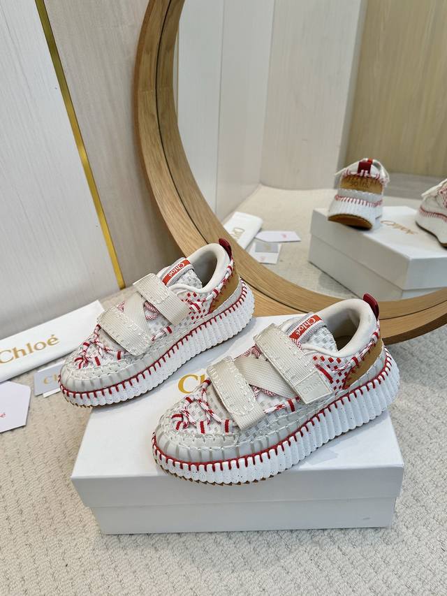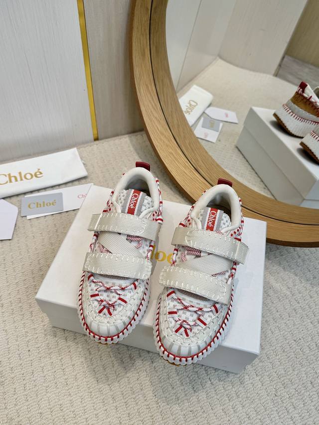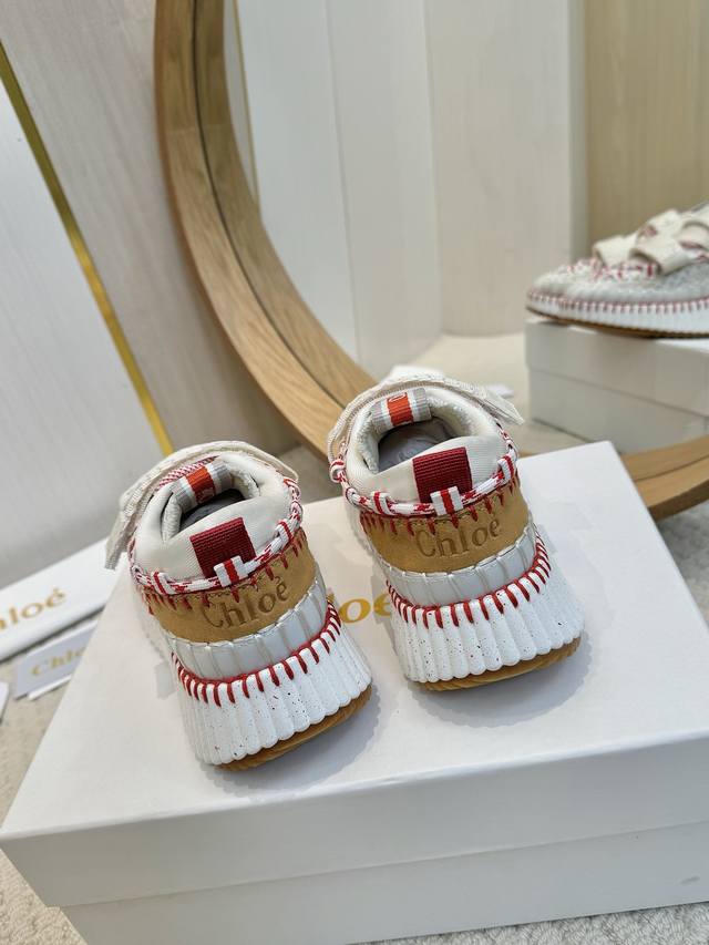 2025春夏chloe 克洛伊Nama sneaker彩虹系列运动鞋、容祖儿和孙怡宋茜明星同款、原材料是可再生物料制作、全手工缝马克线、肉眼可见皆是手工制造、环保与时尚集一起用韵律感勾勒春天清新的气息、轻盈百搭四季可穿、正品全套包装、橡胶发泡底私模大底、码数35-42,一起4各色