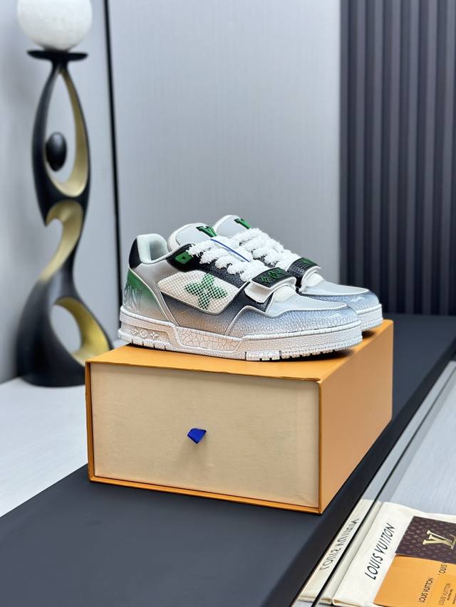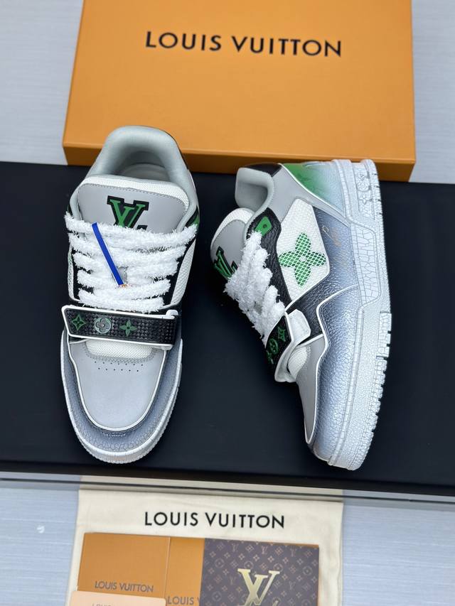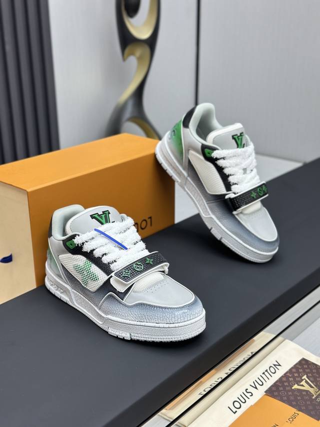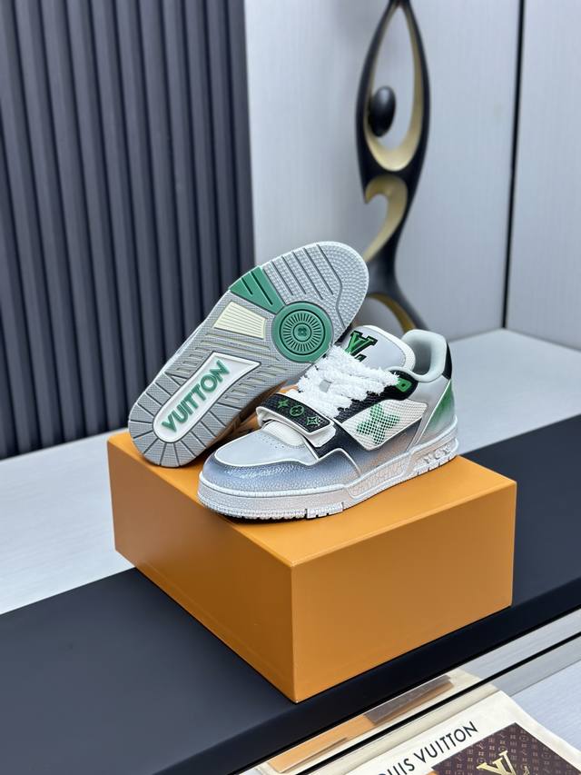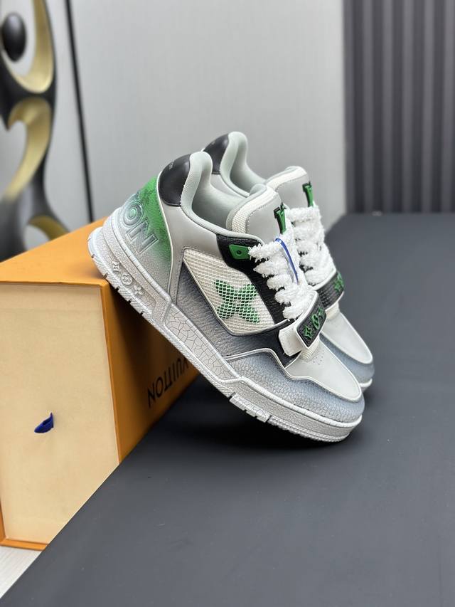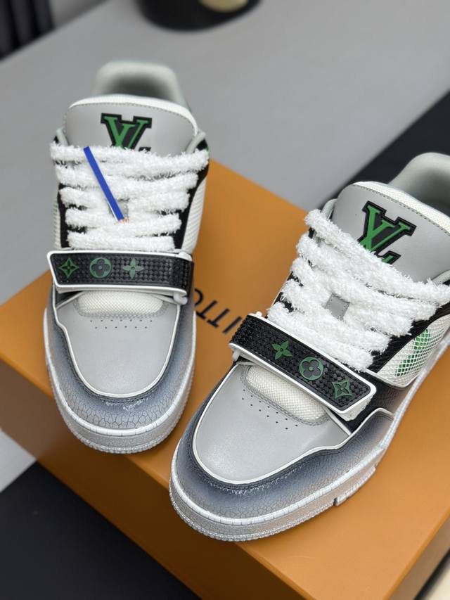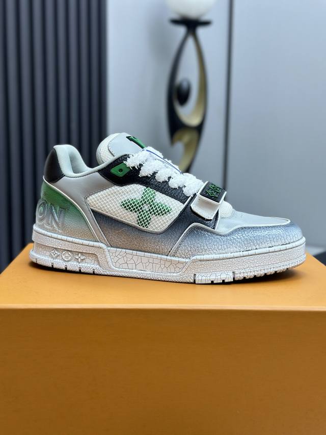 鞋面由意大利进口小牛皮拼接,侧边饰有品牌LOGO标志及签名,最新乳胶垫脚网布内里,脚感超舒适。原厂特供原版双色TPU组合大底。套包工艺 固特异缝合锁边