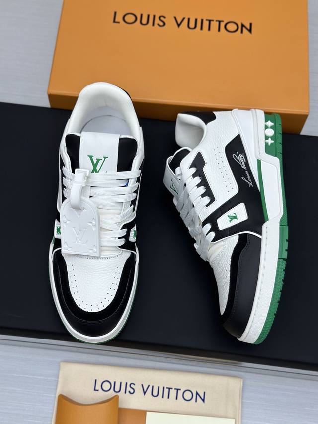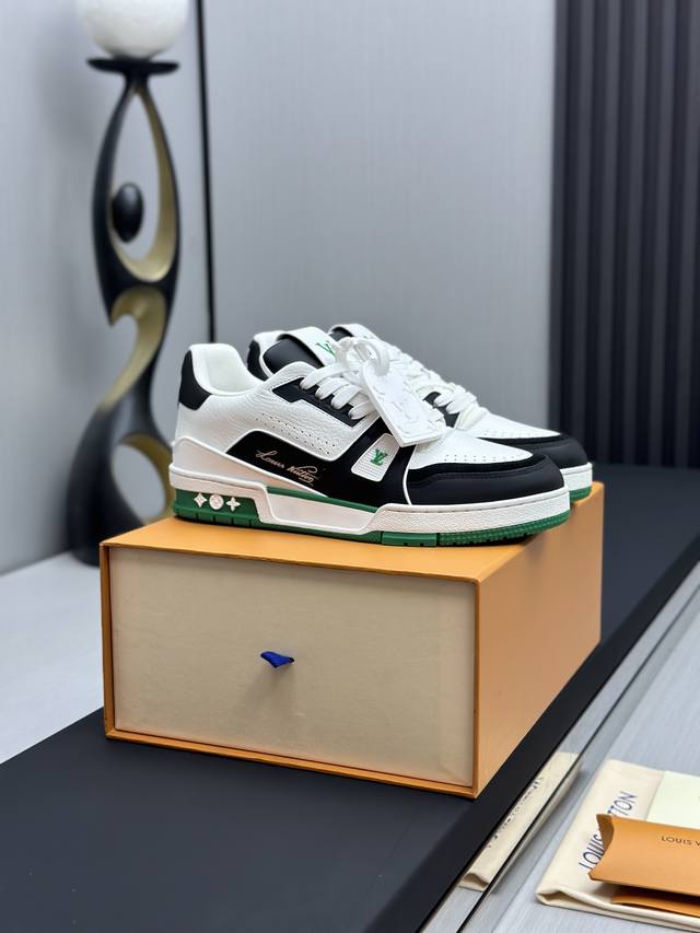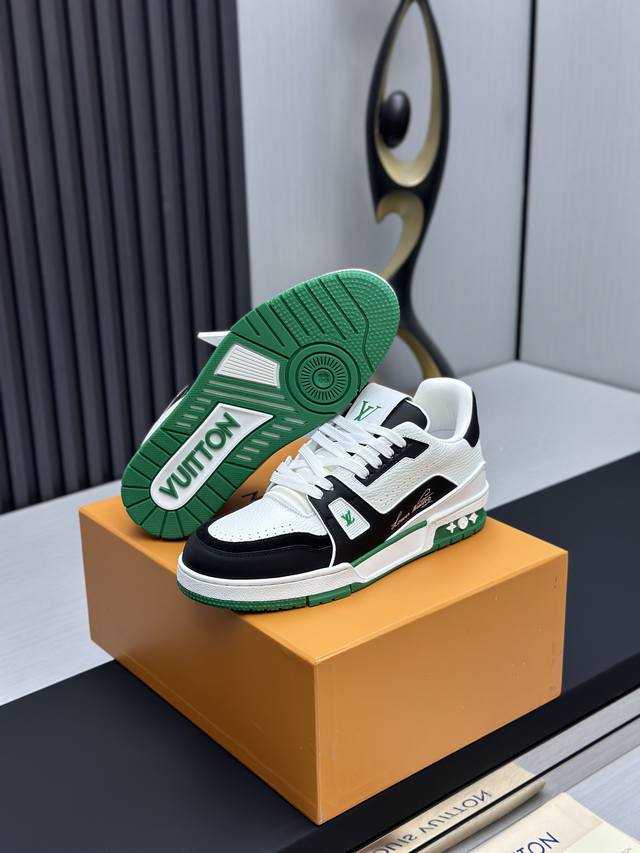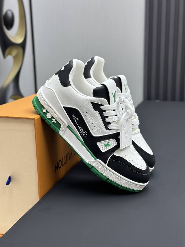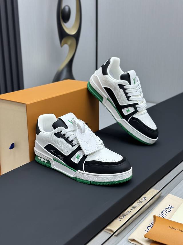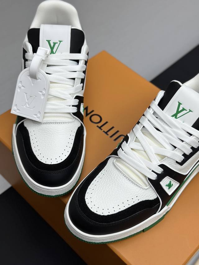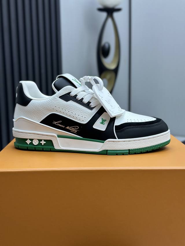 鞋面由意大利进口小牛皮拼接,侧边饰有品牌LOGO标志及签名,最新乳胶垫脚网布内里,脚感超舒适。原厂特供原版双色TPU组合大底。套包工艺 固特异缝合锁边