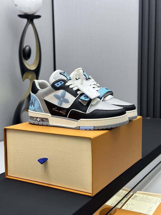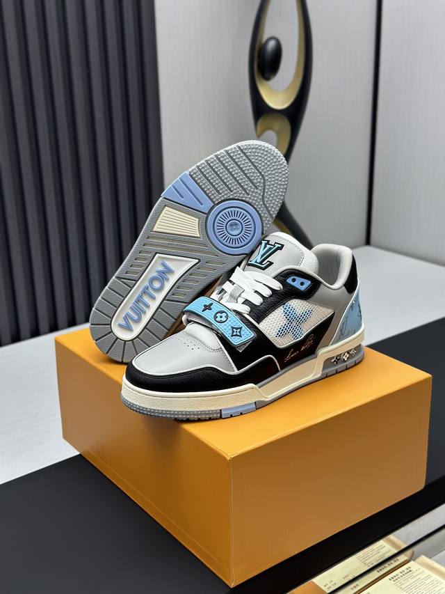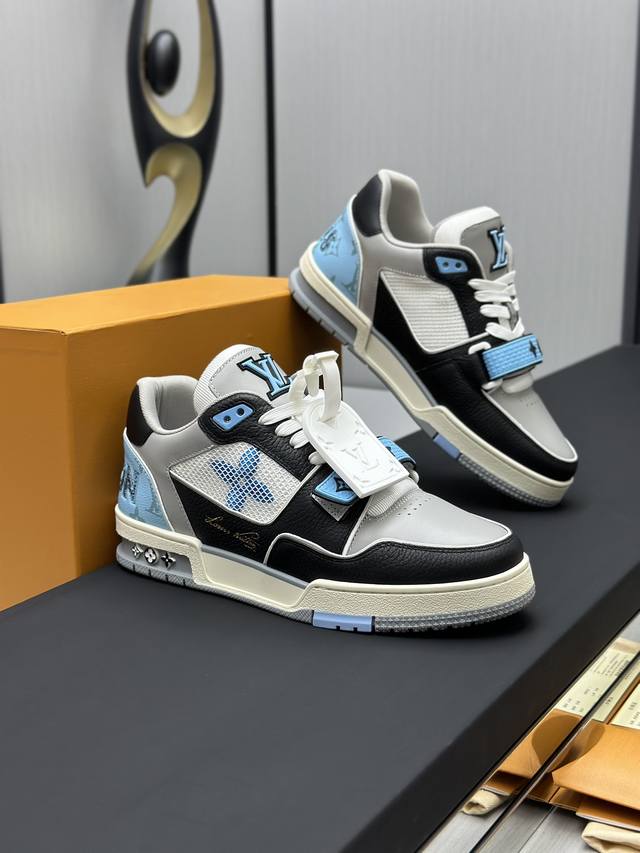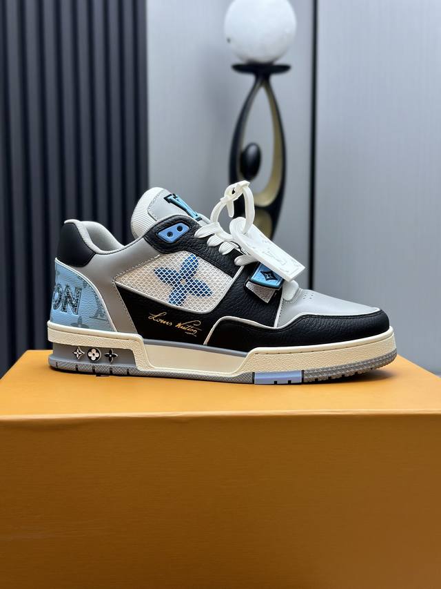 鞋面由意大利进口小牛皮拼接,侧边饰有品牌LOGO标志及签名,最新乳胶垫脚网布内里,脚感超舒适。原厂特供原版双色TPU组合大底。套包工艺 固特异缝合锁边