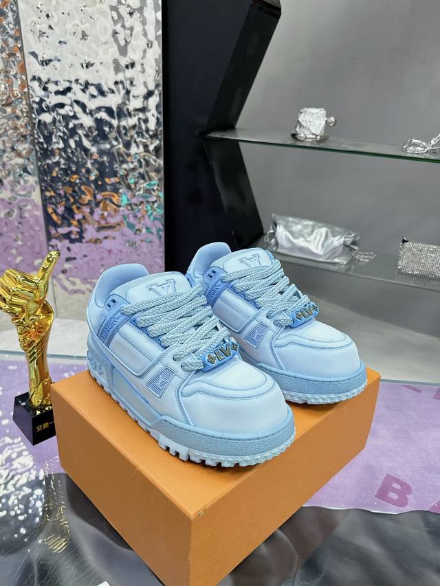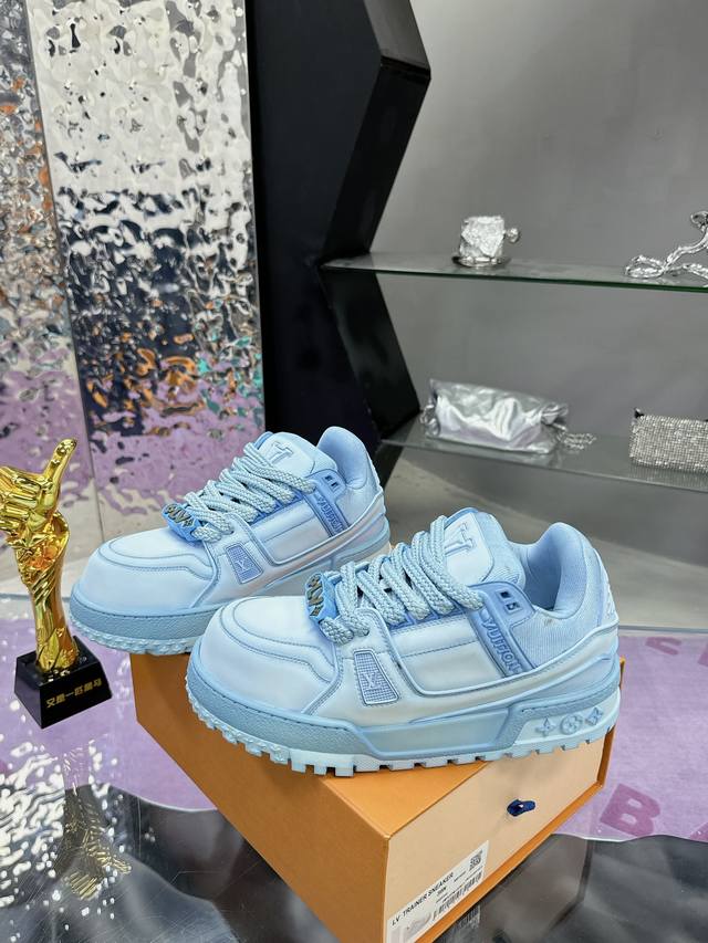 LV驴牌L家最新走秀款 胖墩墩 胖嘟嘟 胖丁TRAINER MAXI面包鞋 滑板鞋 休闲 情侣款 运动鞋 DIY串珠