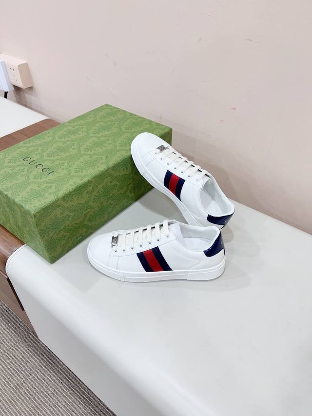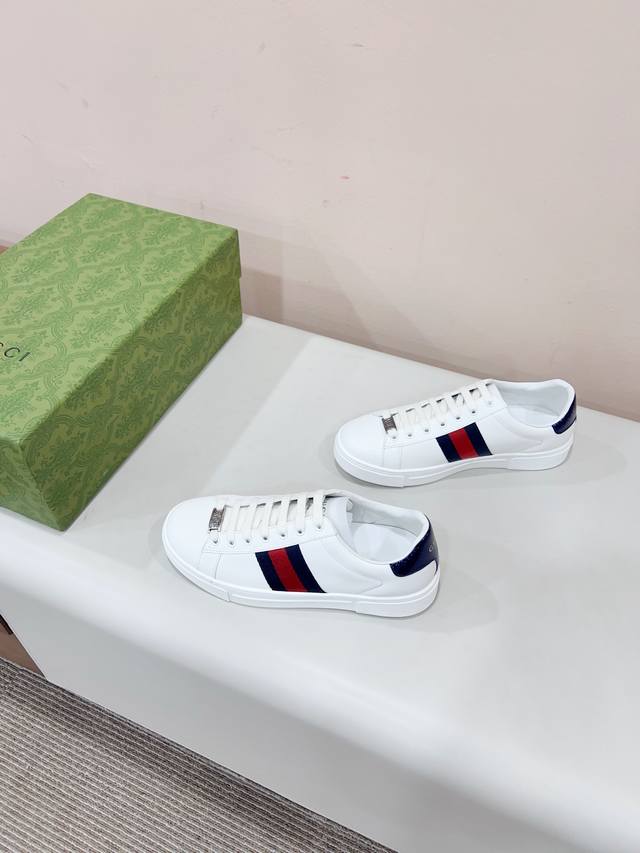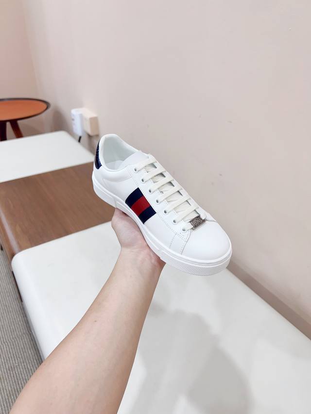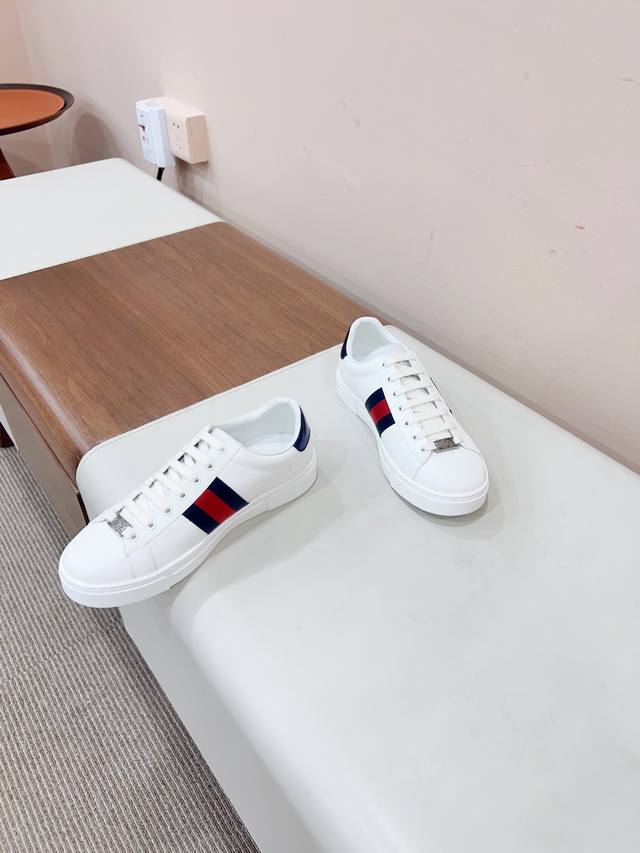 GUCC*Ace系列小蜜蜂星星刺绣踩跟懒人小白鞋