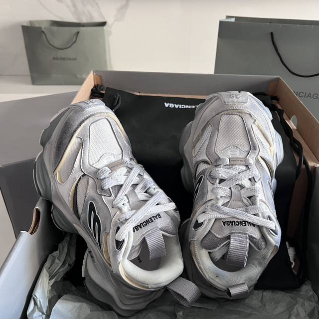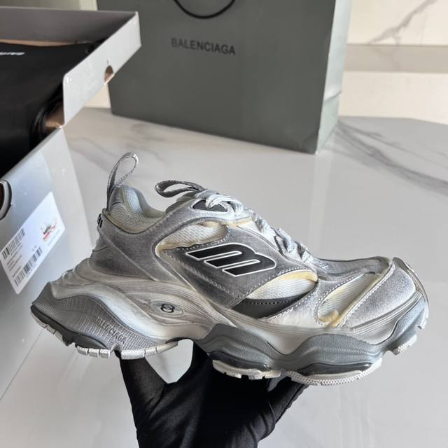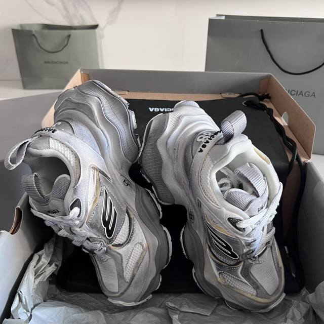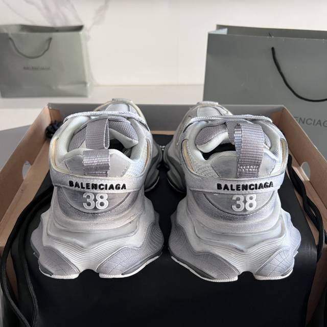 做旧工艺采用手工制作完成,每款鞋的做旧程度、擦破大小及范围具有一定的差异性,属于正常。鞋面是切割的密度高进口海绵填充,鞋舌刺绣Balenciaga字样,还有小刻牌细节,单单这个饰牌都是单独模具开发,侧面还有3M反光材质 后跟的立体logo跟尺码标志,配件防尘袋及附送鞋带升级加厚鞋盒 ,全部采用原档案原楦数控开发1:1比例克重 原装EVA环保去臭环型