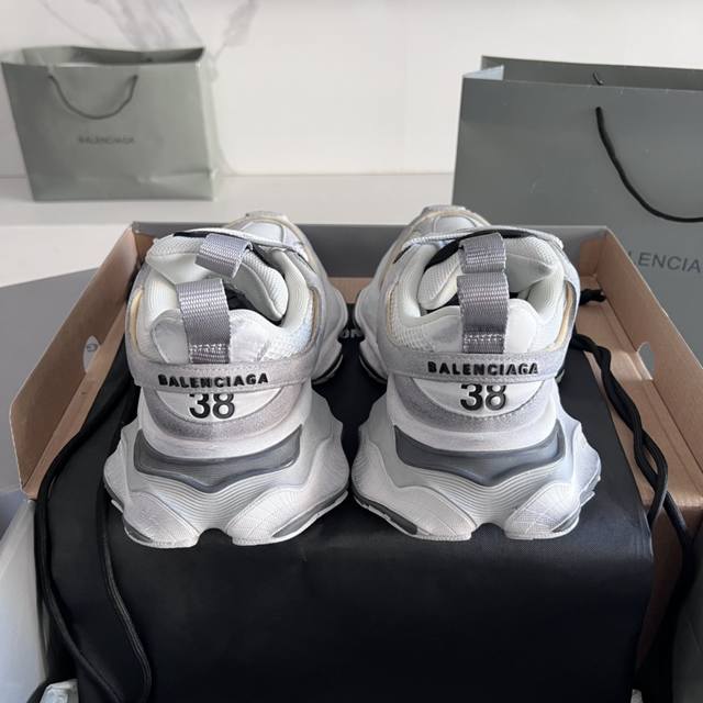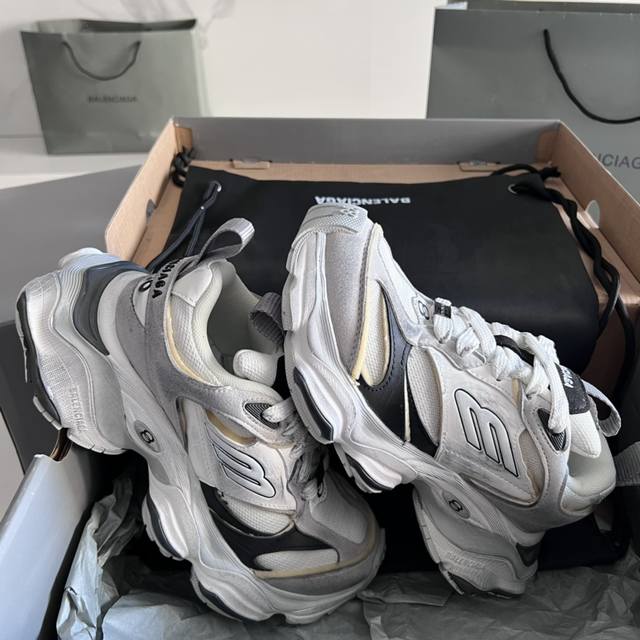 做旧工艺采用手工制作完成,每款鞋的做旧程度、擦破大小及范围具有一定的差异性,属于正常。鞋面是切割的密度高进口海绵填充,鞋舌刺绣Balenciaga字样,还有小刻牌细节,单单这个饰牌都是单独模具开发,侧面还有3M反光材质 后跟的立体logo跟尺码标志,配件防尘袋及附送鞋带升级加厚鞋盒 ,全部采用原档案原楦数控开发1:1比例克重 原装EVA环保去臭环型