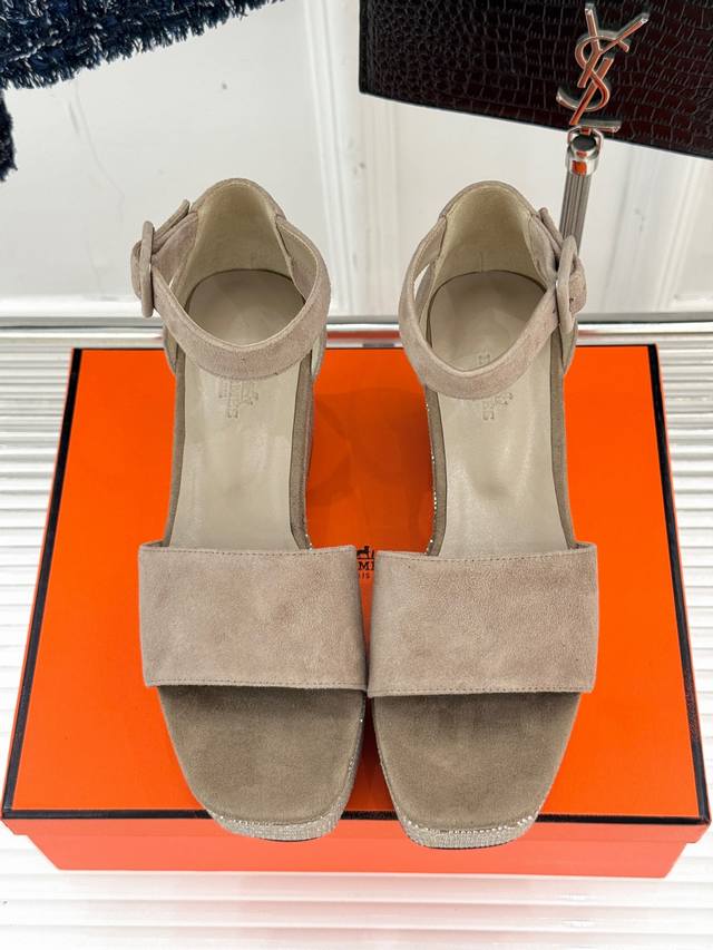 开年出货 厂价 底带钻 Hermès 爱马仕25ss早春新品水钻厚底一字带凉鞋谁也无法拒绝亮晶晶的美鞋坡跟设计 线条流畅优雅推荐入手显瘦显长腿高级感女人必备单品