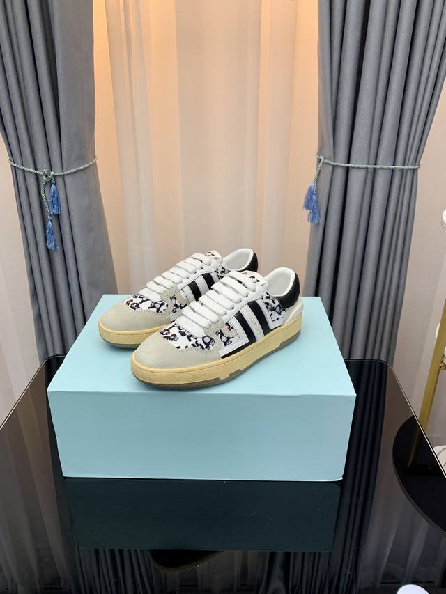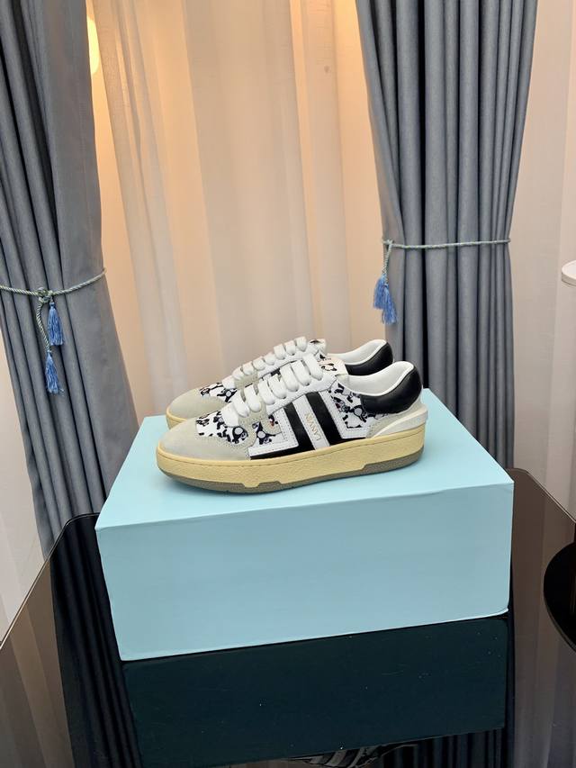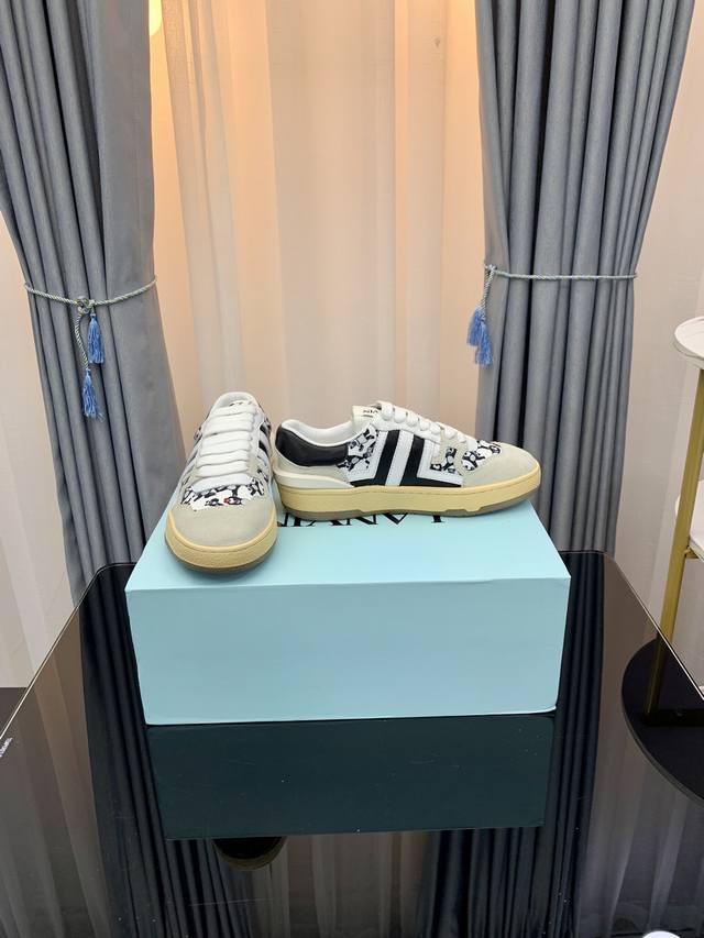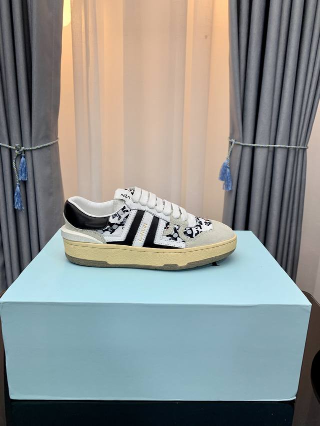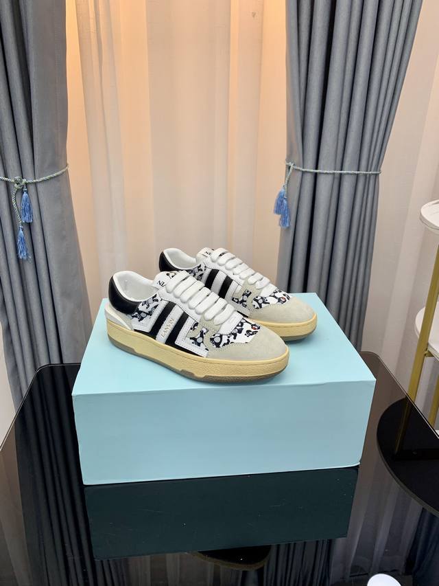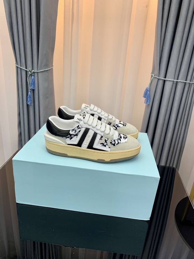 LANVIN浪凡最新系带时尚休闲板鞋~高品质CLAY情侣系列 当季最新潮品 众多博主纷纷种草,入购原版开模定制,鞋面和大底马克线串线缝制不封边工艺,多种材质拼接组合设计,非常百搭时尚休闲穿搭,上脚舒适 自留推荐!鞋面牛皮+牛反绒+透气网内里垫脚牛皮独家原版开模清晰logo大底情侣标准码35-45
