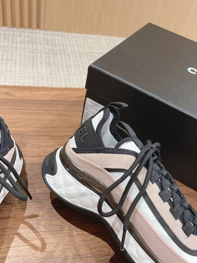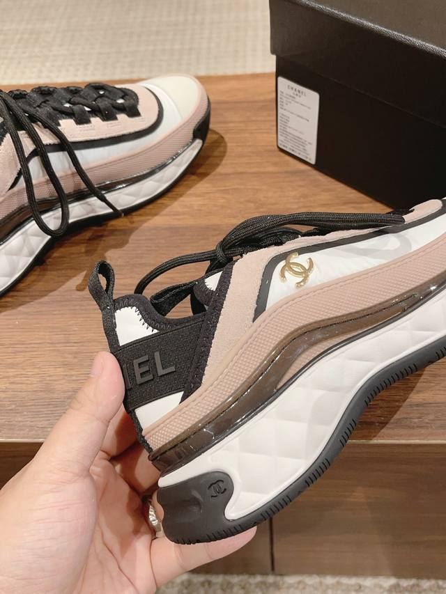 情侣款 香奈儿经典气垫增高休闲运动鞋流线型设计,非常透气又增高哦!舒适又休闲!非常好搭配 裙子裤子都OK!定制牛反毛皮 真丝布开边珠牛皮材质丝光棉鞋垫 吸汗透气