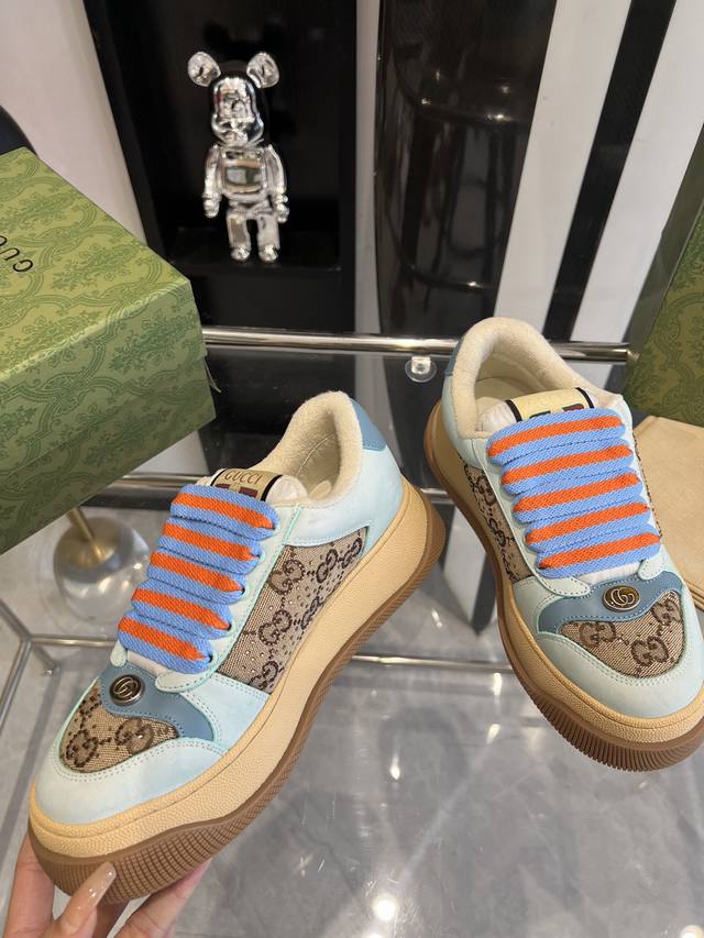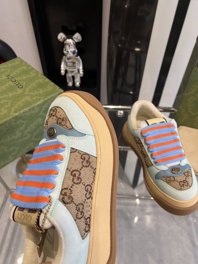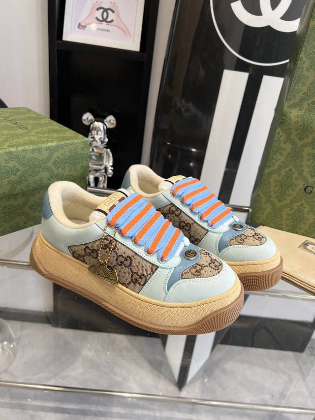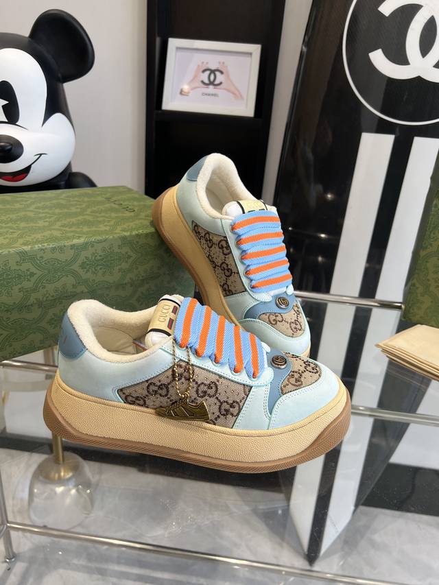 情侣款 GUCCI Screener系列小脏面包鞋Zp购入 一比一完美出货 所有细节 材料全到位码数:35-44