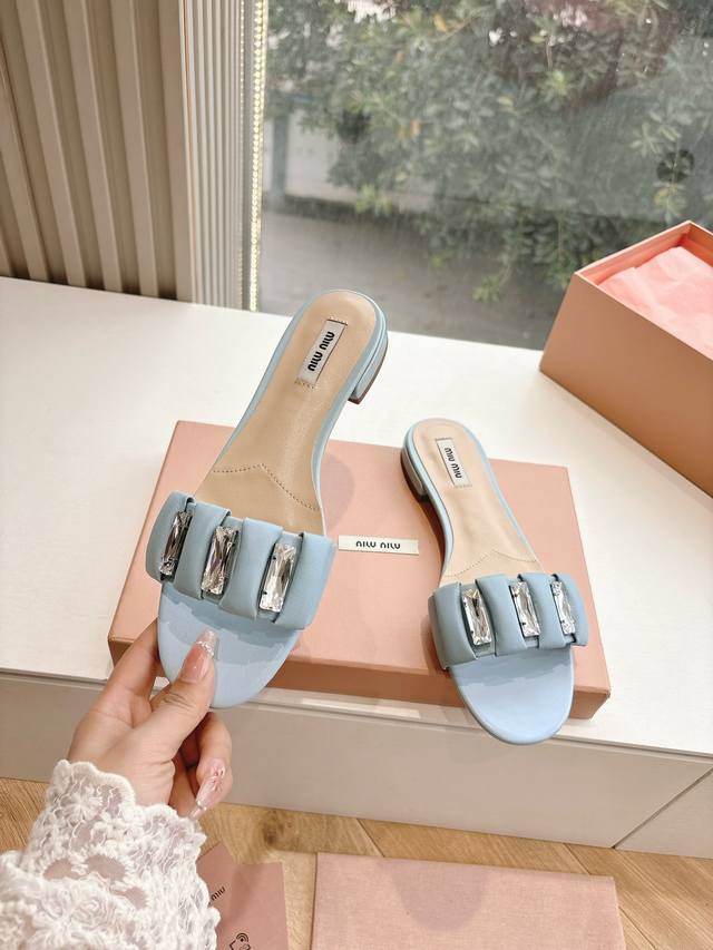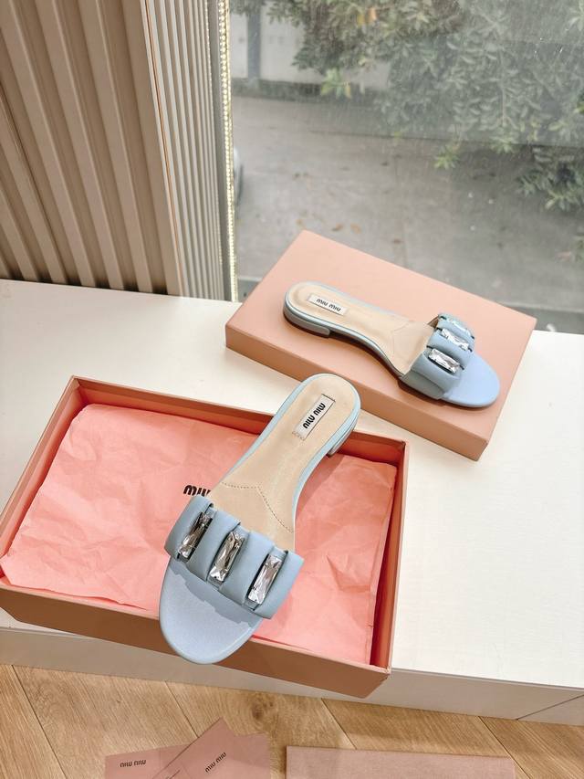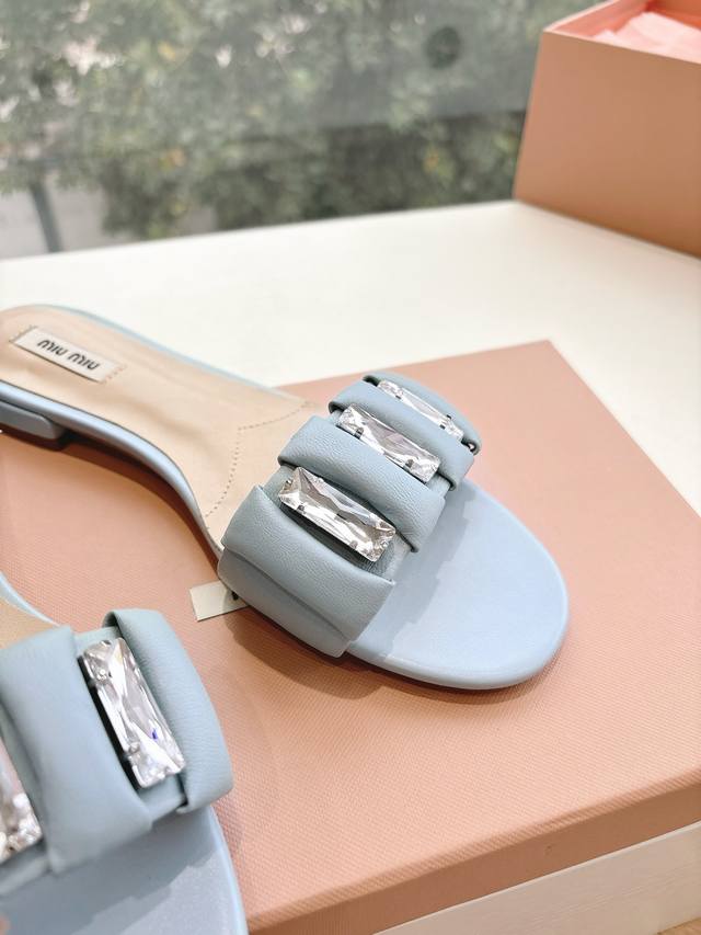 所见即所得G122代购级Miu Miu 缪缪女士褶皱拖鞋Miu Mi* 2025春夏新款原版秒杀市面版本 Miu真的太少女啦!超级软糯 喜欢可以冲了!