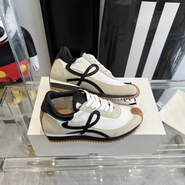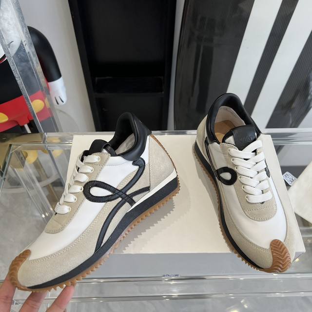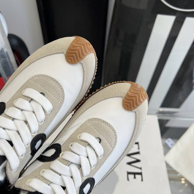 新色 超级火爆 情侣款 LOEWE 罗意威 早春最新内增高拼色德训鞋 阿甘鞋 小白鞋 超级好看 超级百搭 超级舒服 拼色拼接鞋面 非常高级隐藏式内增高5cm!脚后跟设计新颖 柔软舒适,会被评为年度最舒适的暴走鞋 ,如履平地 !!原版细节!