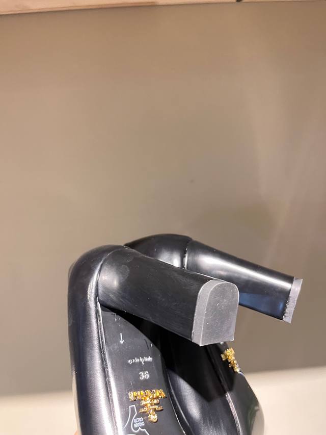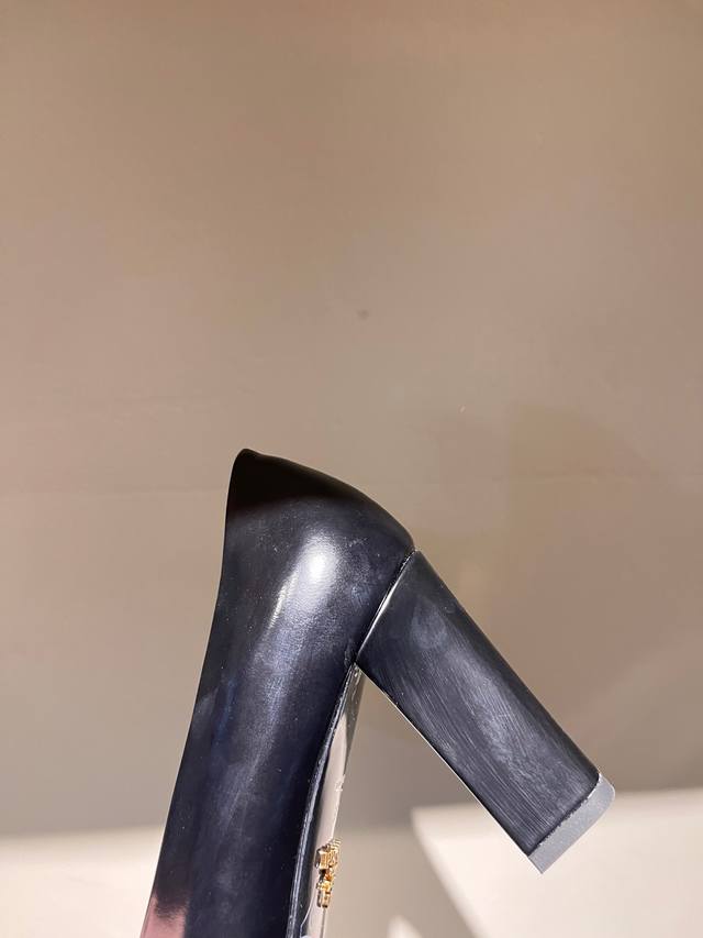 这款高跟鞋使用优雅,将简约的造型与漆面皮革的精致风范巧妙融合。丝网印花字母徽标提升摩登设计的格调。