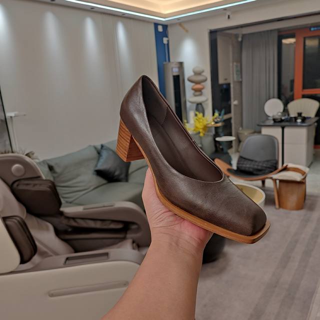 木纹喷涂粗鞋跟6cm中跟高度设计,既平稳又舒适,新颖材料撞色非常有冬天