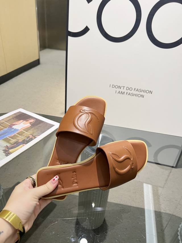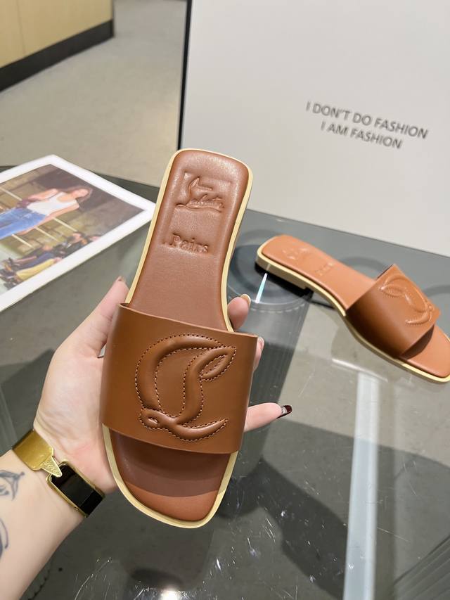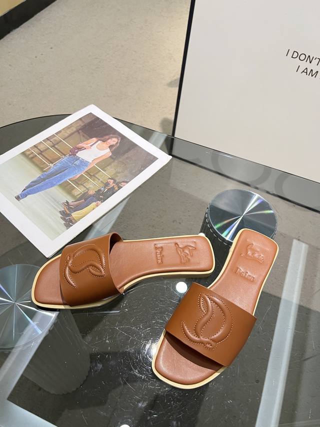 橙子出厂价 路铂廷 CL MULE 女士休闲拖鞋 一字拖红底鞋码数:35–43
